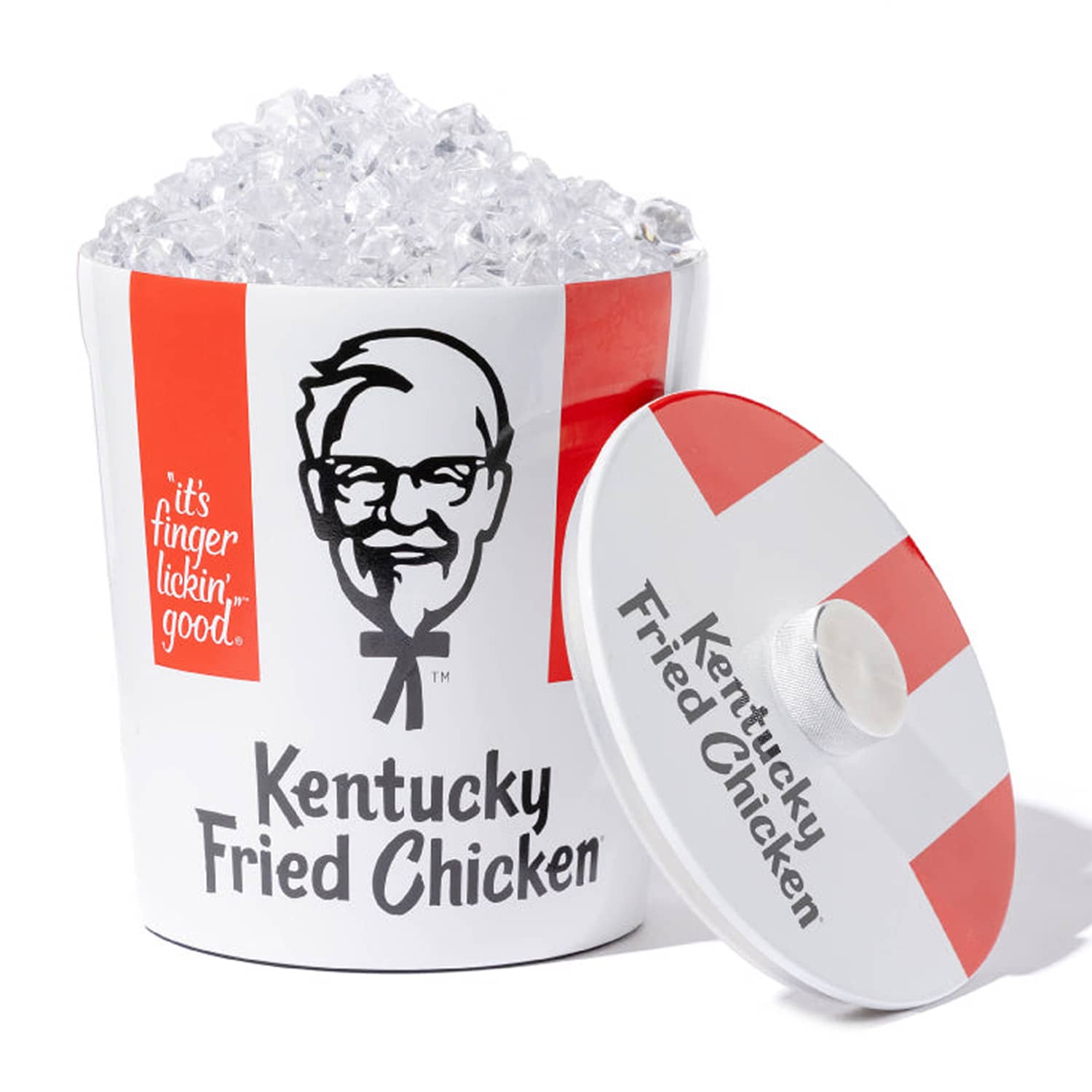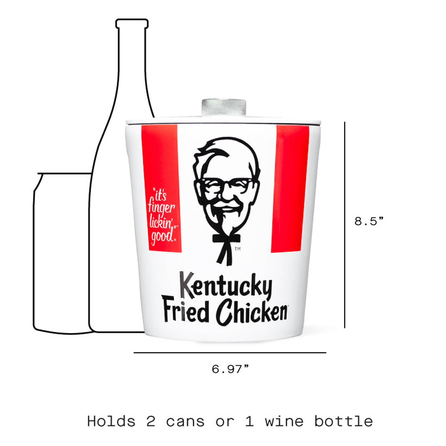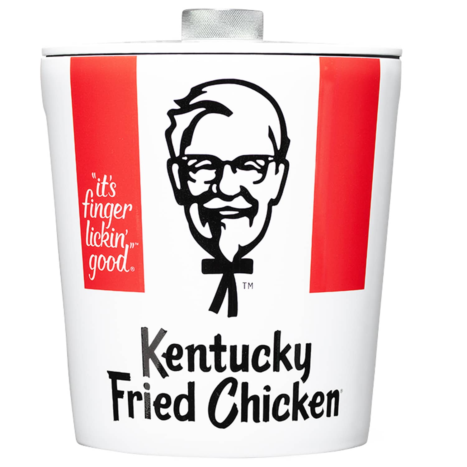 This cool new KFC x Corkcicle Ice Bucket is an insulated stainless steel ice bucket styled after the iconic Kentucky Fried Chicken bucket to keep ice cubes cold or fried chicken hot. It features a matching lid, non-slip bottom, triple-walled insulation that keeps ice cold for up to 48 hours, a generous 110-oz capacity, and signature flat sides. Now while KFC's fried chicken might be "finger lickin' good", please use tongs instead of your bare hands when getting more ice for your drink.