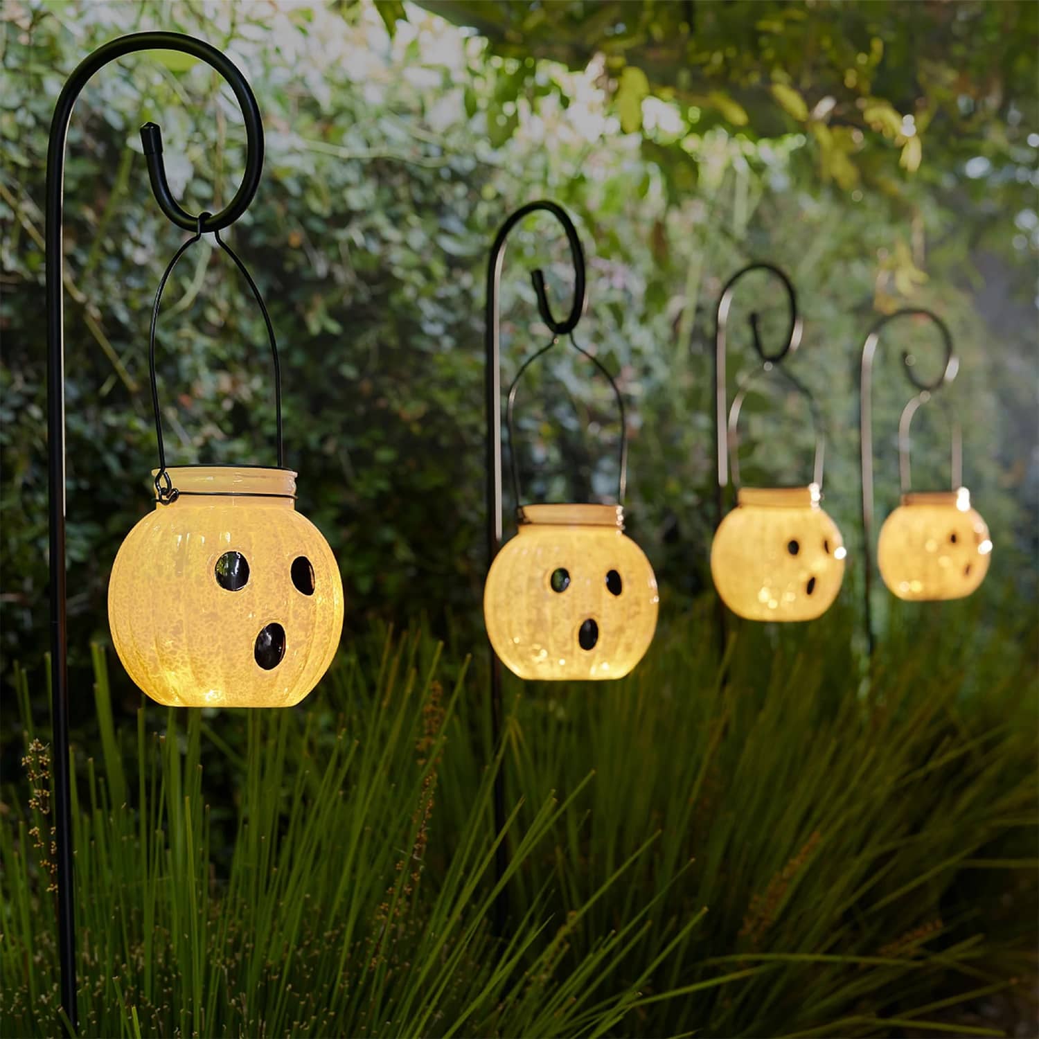 Spooky Mercury Glass Ghost Solar Pathway Lanterns with Metal Stakes