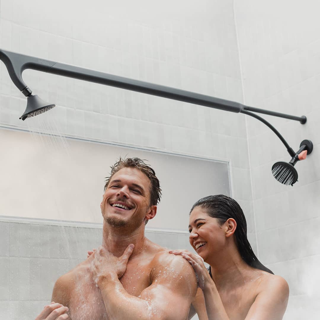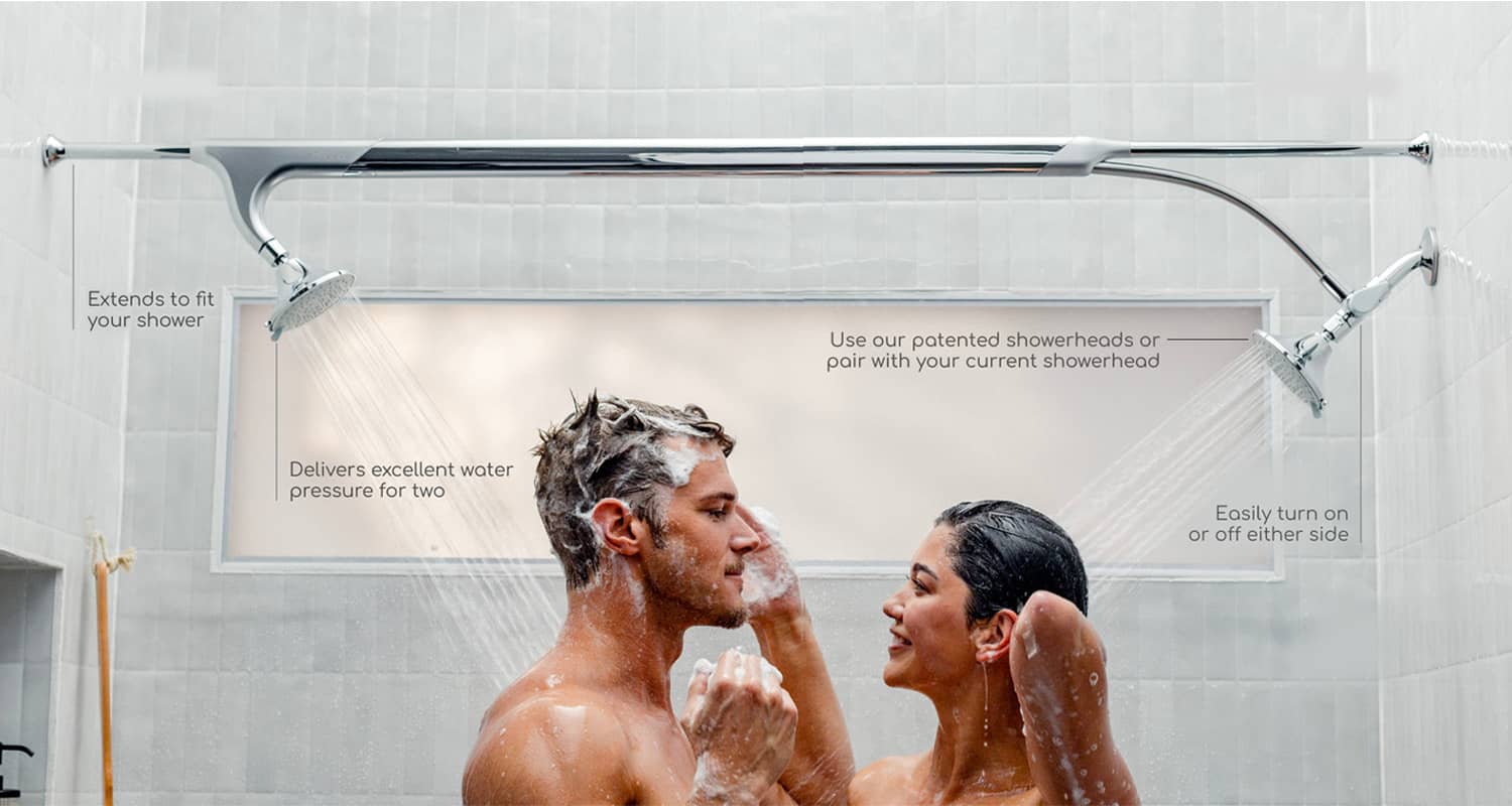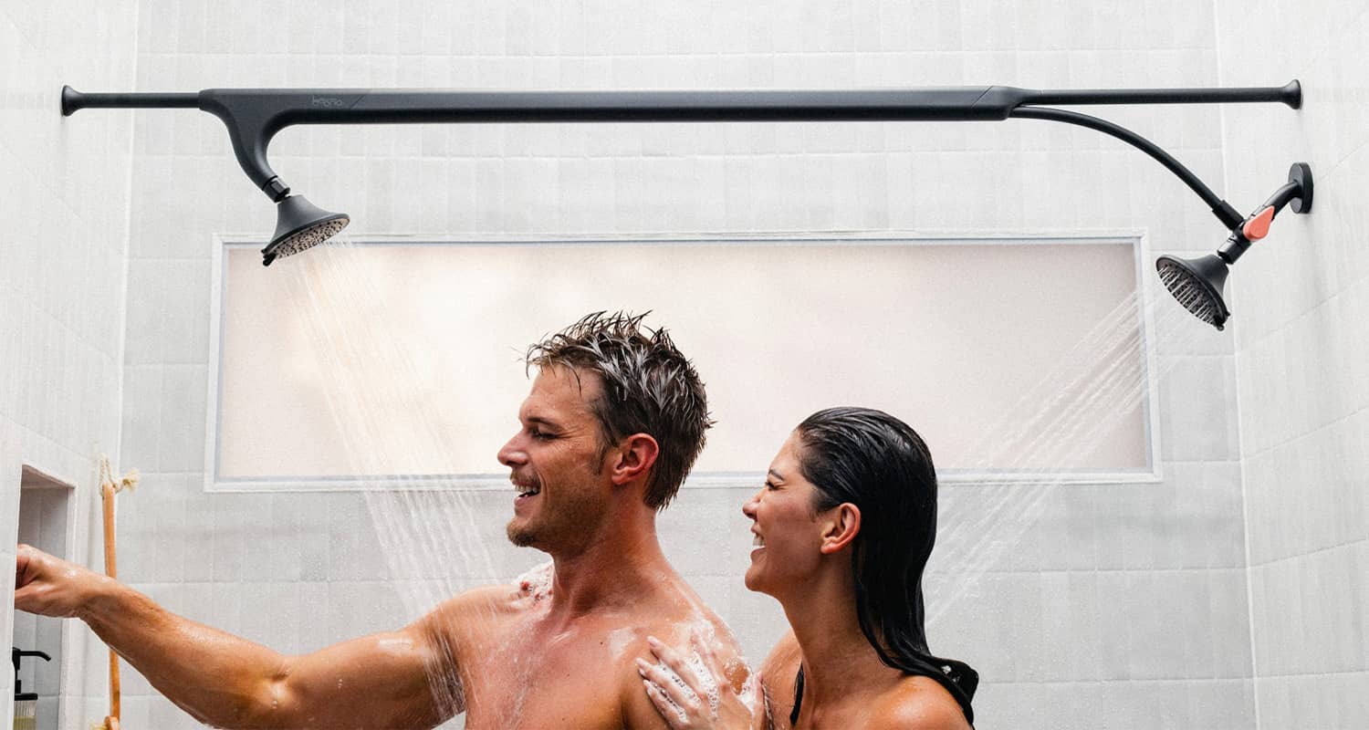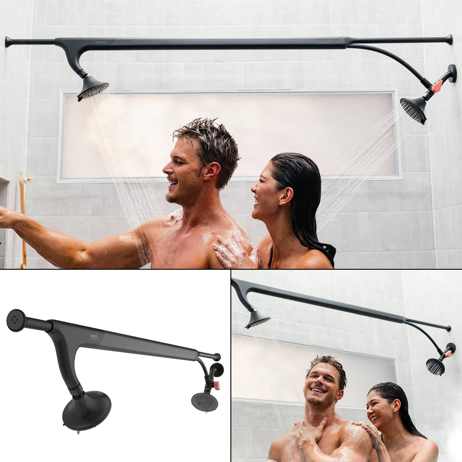 If you like to share a shower with someone to save time and water (or just for fun), but dislike to wait in the cold for your turn to get under the warm water, then check out this cool new Tandem Shower from Boona. This luxurious double-headed shower head transforms a boring single-headed shower into one for couples to share and enjoy at the same time with maximum water pressure. It's also great if you want an extra exhilarating front and back showering experience going solo as well. It features three flow settings: Max Pressure, Rainfall, and Swedish Massage, installs with ease using no tools in under 10 minutes, adjusts for showers between 56 - 76 inches wide, and has a valve that allows you to turn either shower head on or off as needed. It's available with either two shower heads or a single head if you want to attach it to your current shower head and comes in 3 colors: black, chrome, or colorful retro Miami. Extra person to shower with not included.