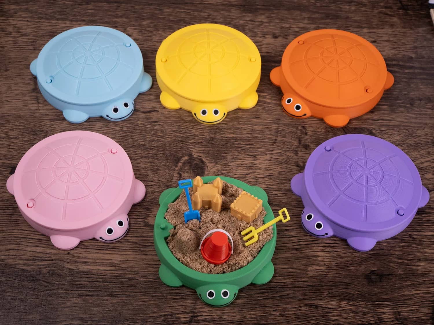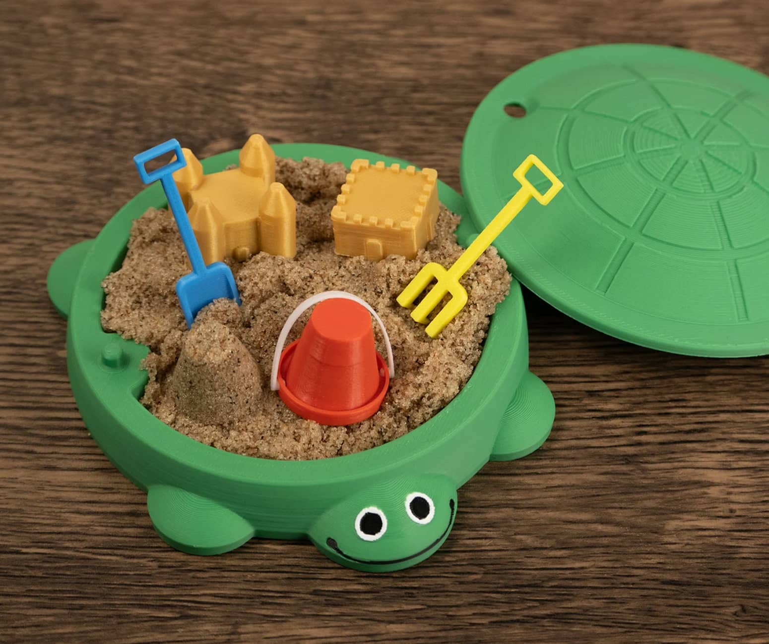 Do you remember having that iconic green turtle sandbox as a kid, but not a lot of stress or anxiety? Well, now you can relive your carefree summer days as a little one and relieve stress at the same time, right on your desk at work, with this cool new yet quite retro-inspired Mini Turtle Sandbox / Zen Garden. This handmade, er, 3D-printed miniature turtle sandbox includes a turtle shell lid, moldable play sand, scaled-down sand toys (two sandcastle molds, bucket, rake, and shovel), and is available in 6 colors... go with green, obviously. Hmm, now I wish they would just make a scaled-up version for adults to sit in and play whenever the world begins to suck again, which is basically all the time now. π«π’ποΈπ