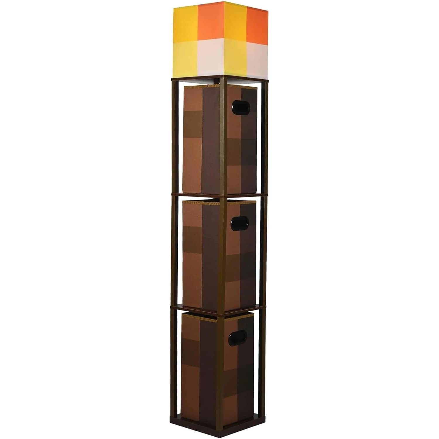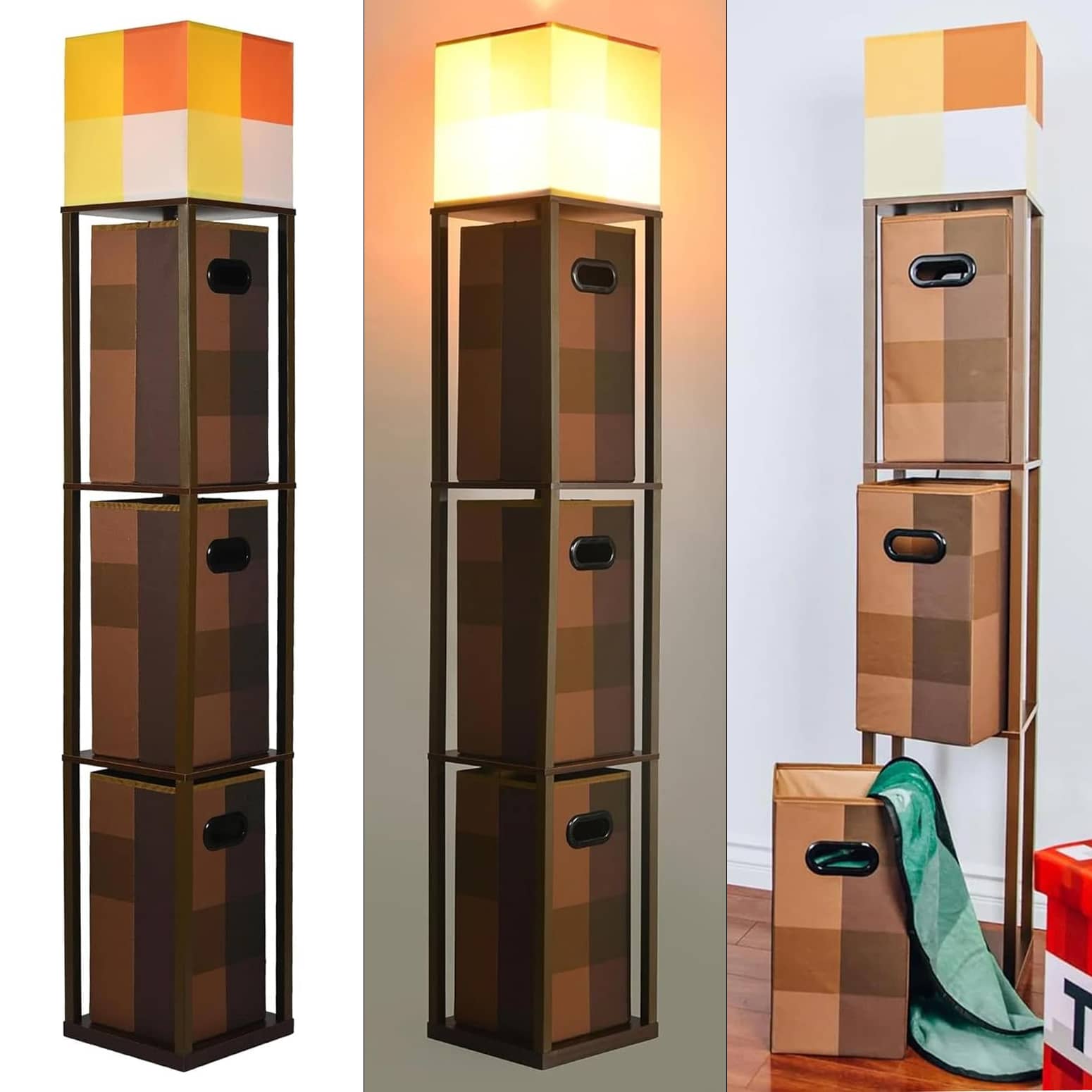 No matter whether it's a cave, mineshaft, bedroom, or game room, illuminate it in proper blocky style and prevent hostile mobs from spawning at the same time with this cool new Minecraft Brownstone Torch Floor Lamp / Storage Unit. There's no need to craft a torch from a stick and coal, because this gigantic, 5-ft tall Minecraft torch is ready to go with a flame-like lampshade on top and three torch wood-inspired storage cubes below to store various items from your inventory. It's perfect for gamers, kids, adults of all ages, chicken jockeys, or anyone named Steve. βοΈπͺ΅π₯π‘
