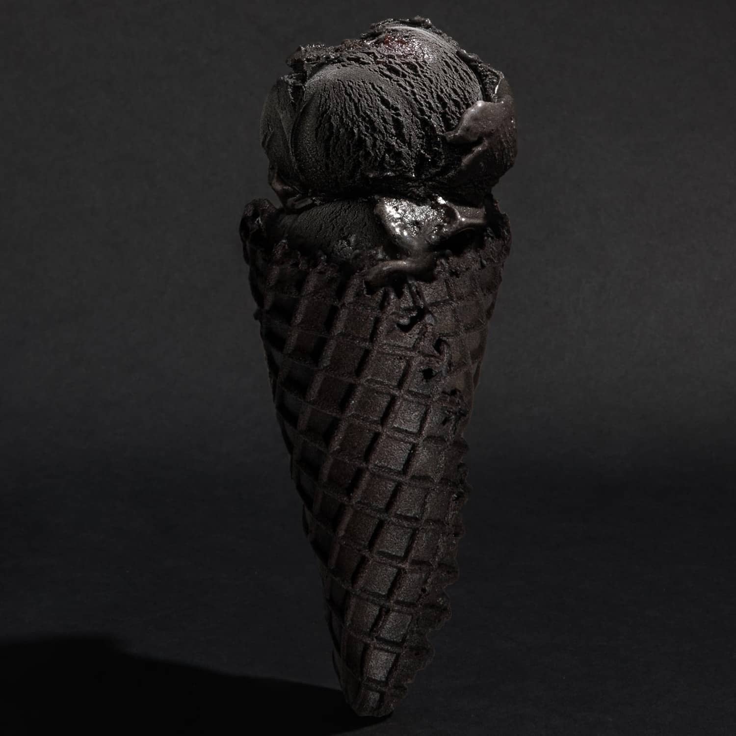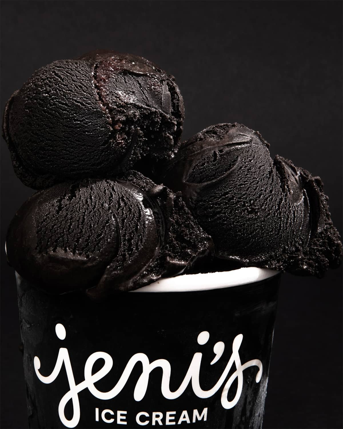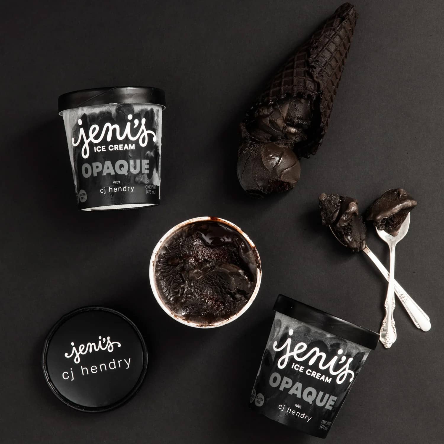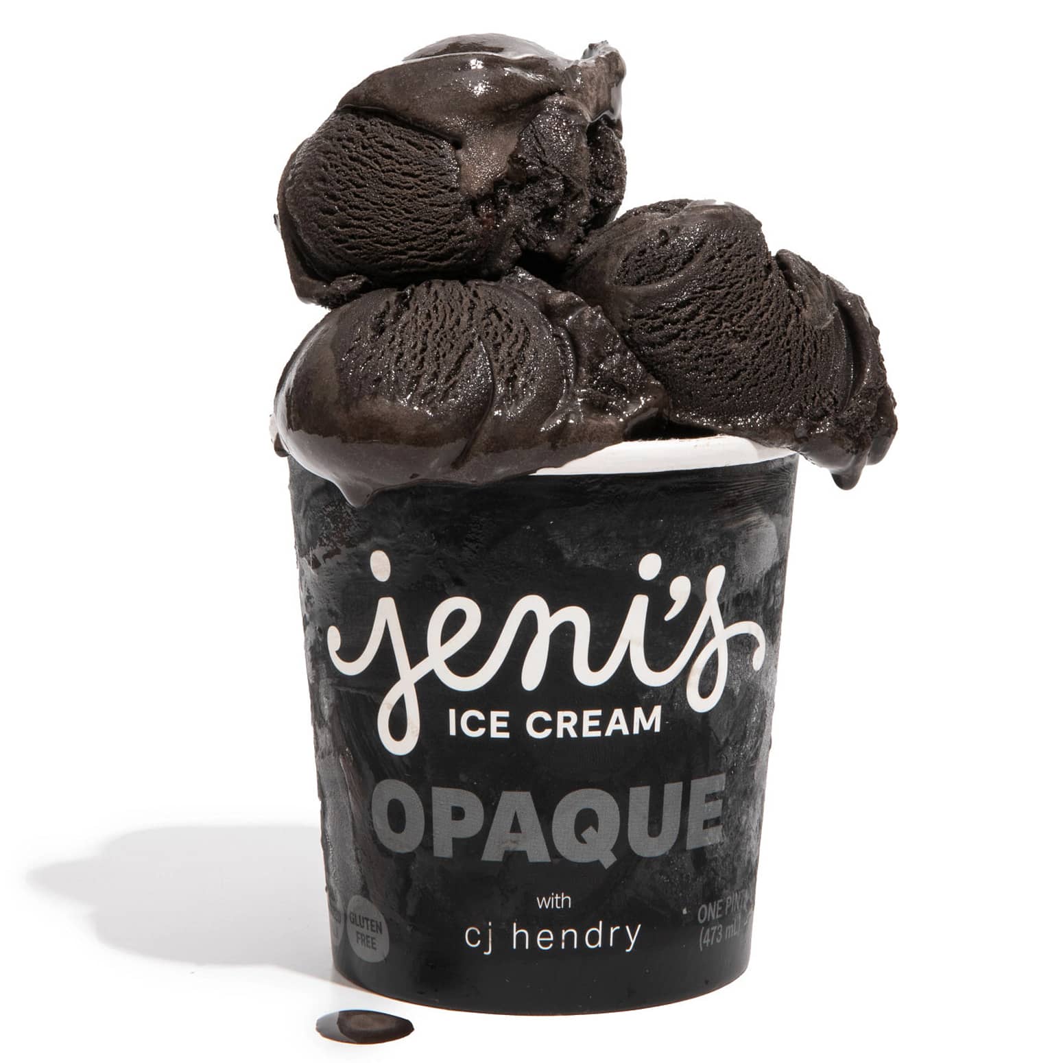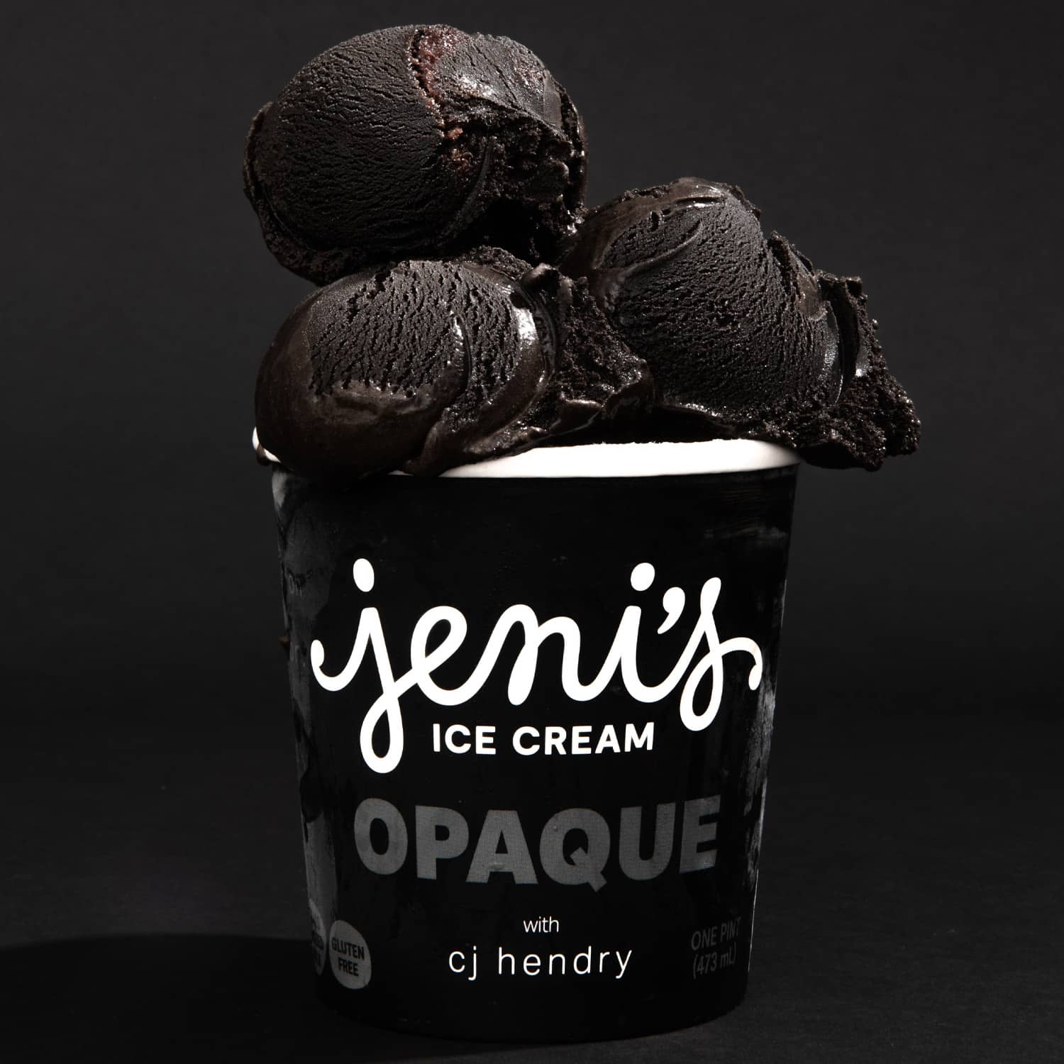 If colors had flavors, what would black taste like? Jeni's Splendid Ice Creams in collaboration with artist CJ Hendry decided to find out with this cool new yet quite frozen Jeniβs OPAQUE Ice Cream. With no visual cues or hues to hint at the flavor, only tasting a scoop of this decadent all-black ice cream reveals the ultra-rich black cocoa, creamy espresso fudge, and ribbons of naturally colored tart cherry balsamic jam to your taste buds. It's best experienced in a black ice cream bowl or black cocoa waffle cone... in the dark. β«οΈπ¦π