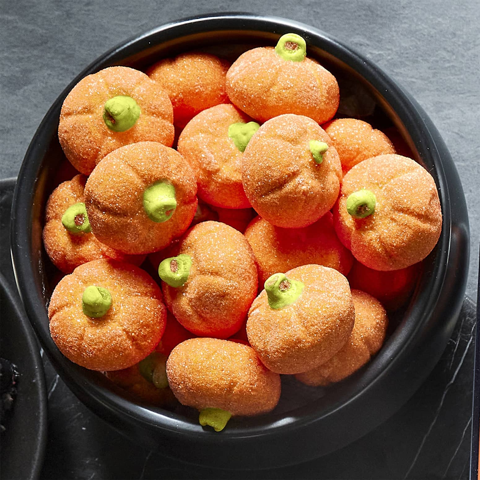 This Halloween season, forget the traditional cylindrical white marshmallow blobs and garnish your mug of hot cocoa with something more seasonally appropriate like these cool new Pumpkin Marshmallows from Williams-Sonoma. These tasty, fluffy, and sweet marshmallows from Italy are shaped and colored like whimsical little pumpkins. They're perfect for floating in hot beverages, decorating cakes, cookies, and cupcakes, roasting over an open fire to make flaming pumpkin s'mores, puffing them up into even larger pumpkin marshmallows in the microwave, making bizarre sweet potato casseroles, sticking over an action figure's head so they look like the headless horseman, topping a slice of pumpkin pie, or just popping into your mouth to enjoy anytime you wish. π