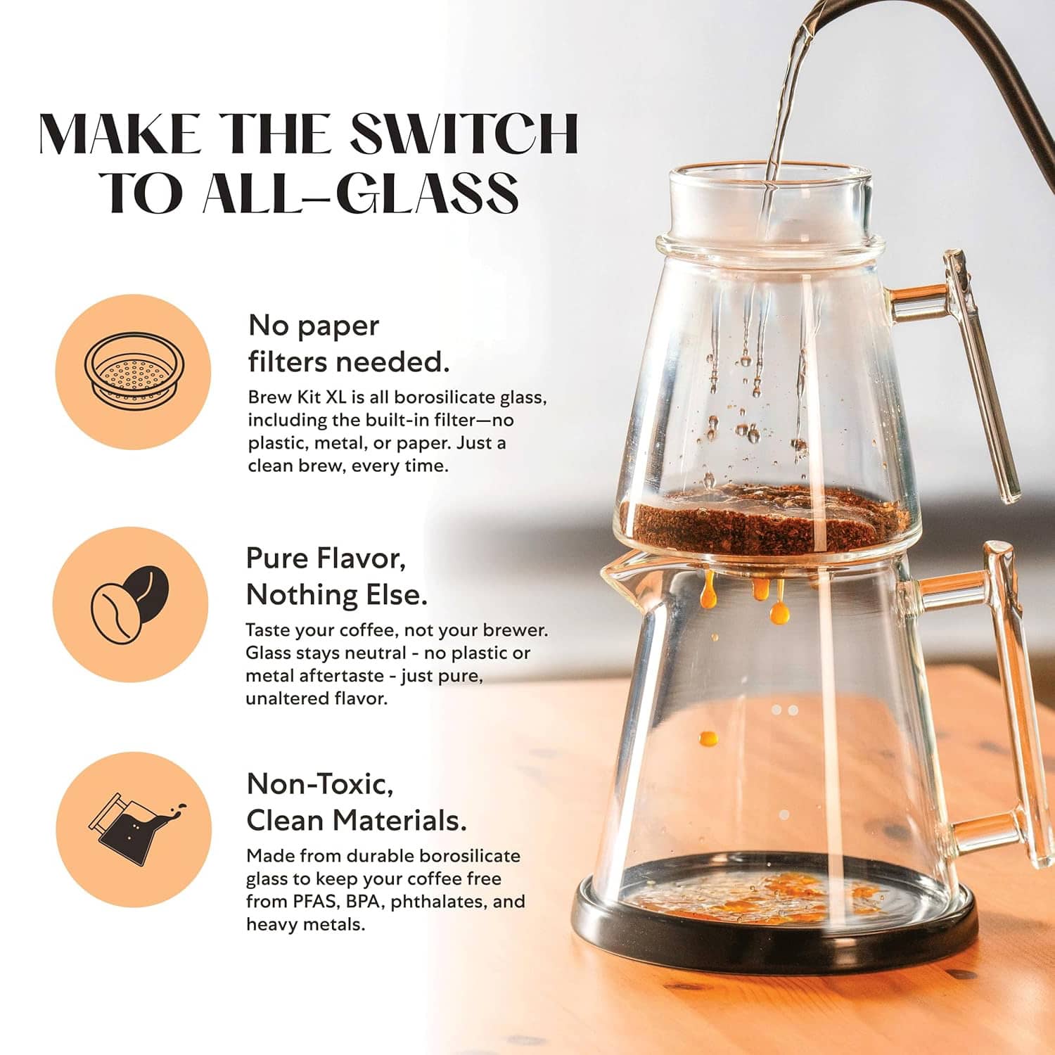 Pure Over Brew Kit XL - All-Glass Pour-Over Coffee Maker
