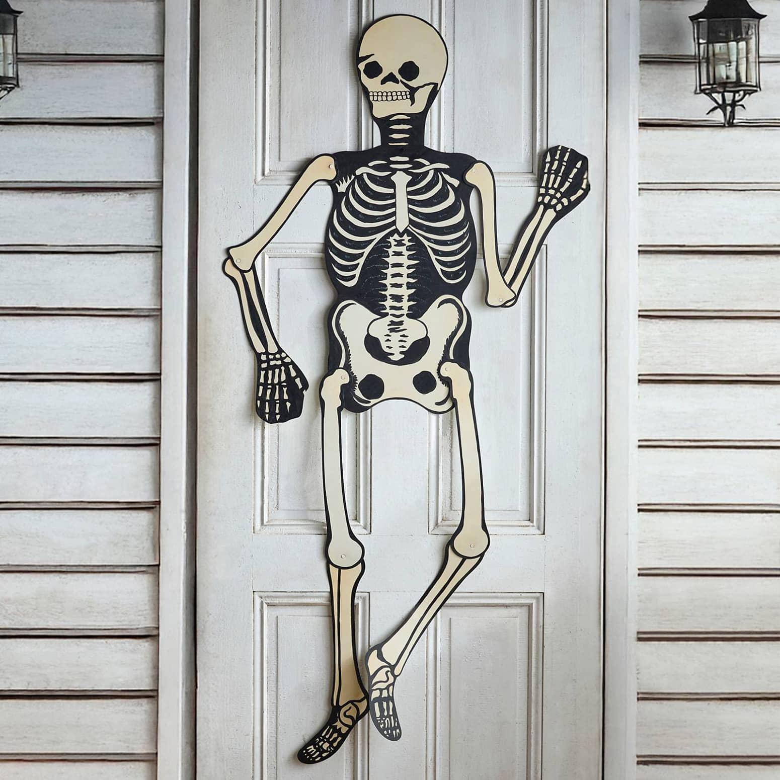 When I was a kid, Halloween decor was much, much simpler than the overblown giant animatronic and inflatable horror spectacle of today. You carved a jack-o'-lantern, taped some paper bats in the windows, wore a cheap costume that was nothing more than a plastic mask held on with a rubber band and a noisy garbage bag-like matching jumpsuit that was probably highly flammable, and just about every house had a cheap jointed paper skeleton hanging on the front door. Well, now you can relive those mildly spooky days of yore with this cool new yet quite retro-inspired Articulated Iron Skeleton Decoration. Instead of thick paper, this life-sized 6-ft tall jointed skeleton is handcrafted from iron and all the joints in the arms and legs are free to move back and forth. Hmm, speaking of fuzzy memories, does anyone remember those equally cool melted plastic popcorn pumpkins, skulls, and witches? π