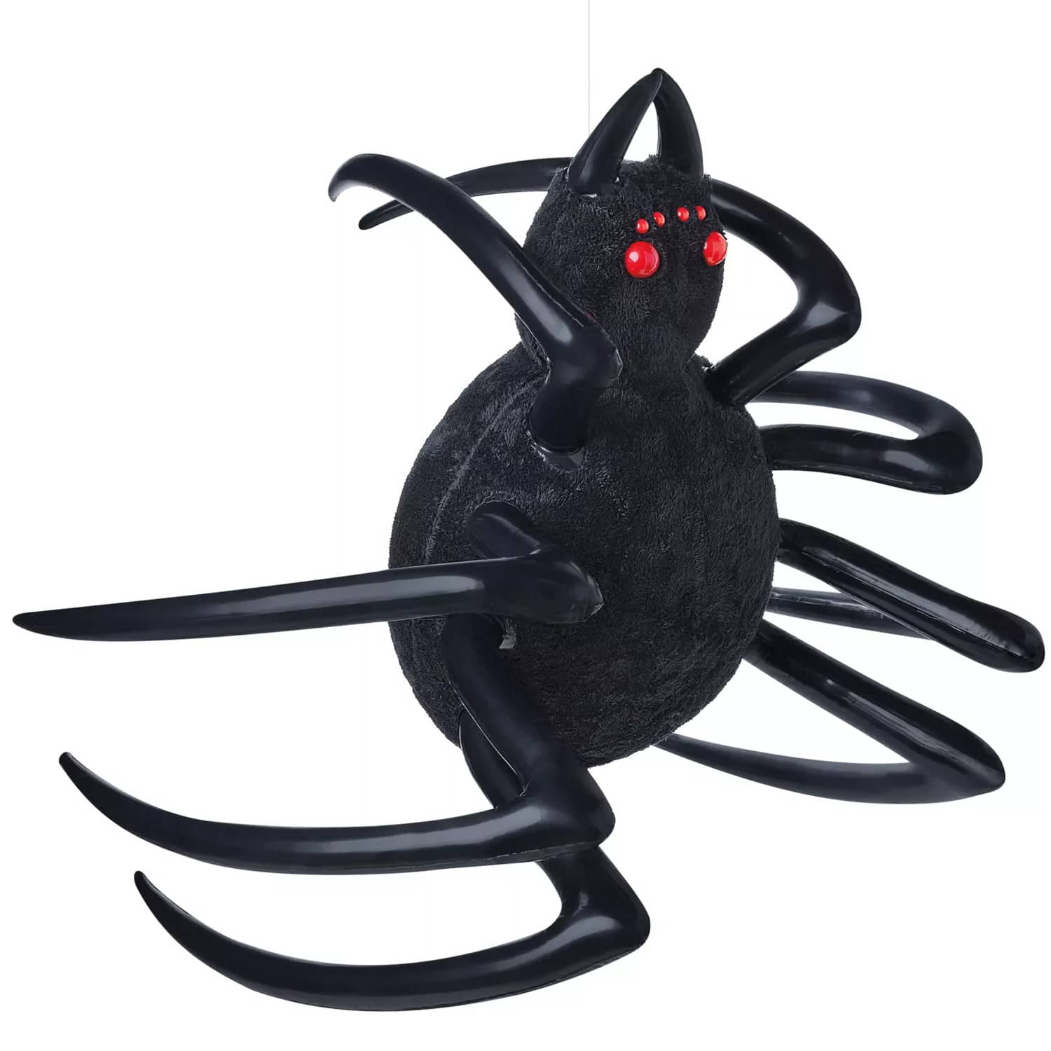 This Halloween, unleash a giant arachnid in your haunted home with this cool new Giant Hanging Inflatable Furry Spider from Spirit Halloween. This massive arachnophobia-inducing black spider with red beady eyes and large fangs is not only inflatable, it also has a creepy yet cuddly soft, furry body. The lightweight design of this eight-legged inflatable makes it easy to hang from an equally huge spider web or you can snuggle up with it while watching horror movies, toss it at unsuspecting victims as a prank, or try filling it up with helium to see if it floats...maybe it's possible!? It also deflates for compact off-season storage as well. Since it's relatively inexpensive, I would think that the more inflatable furry spiders you have, the merrier, er, scarier. π·οΈπΈοΈπ±