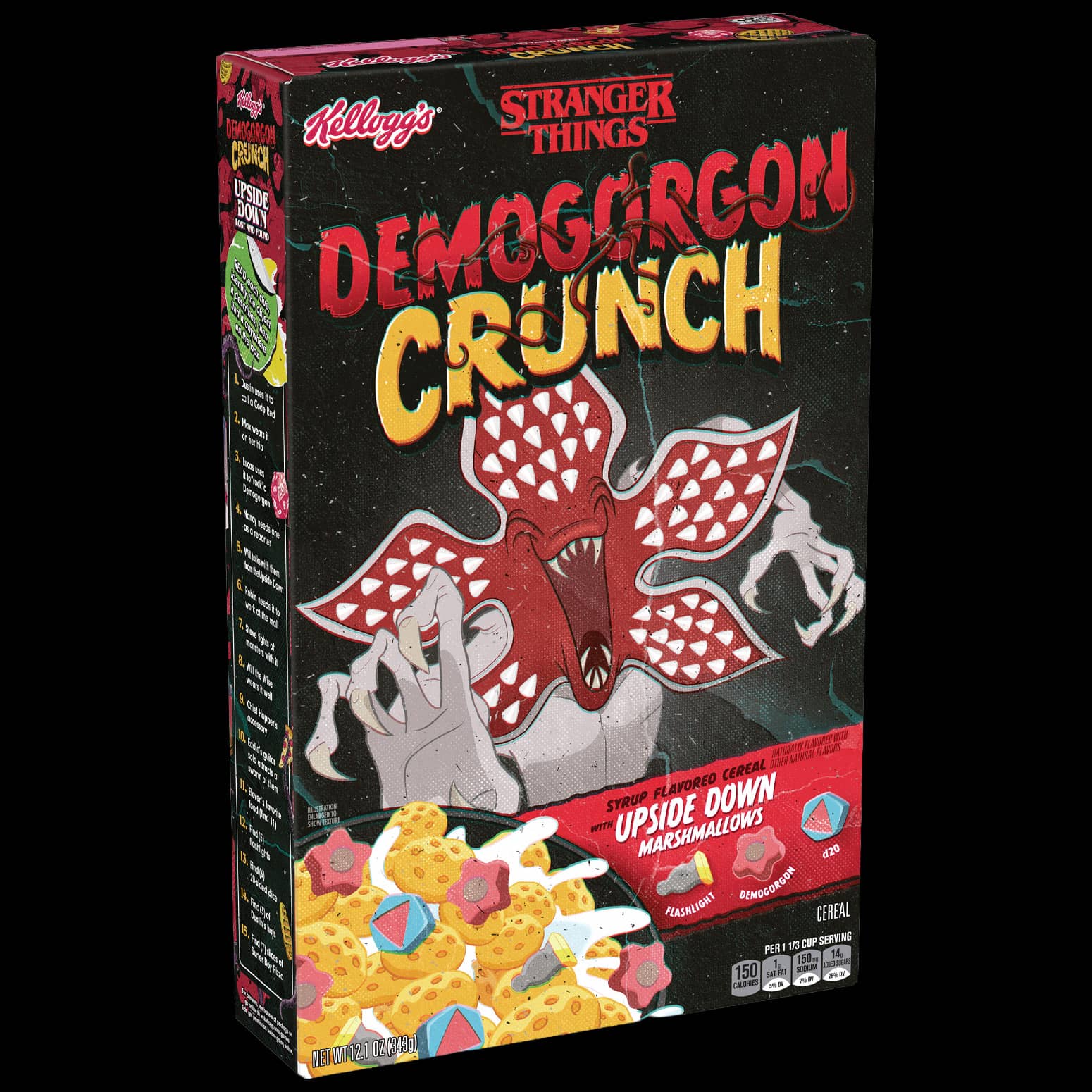 Are you ready for one last adventure in the crazy fictional town of Hawkins and a final battle in the sinister Upside-Down? Then plop down on the couch, scroll to the final season of Stranger Things on Netflix, and dig into a big bowl of this cool new yet quite 1987-inspired Kelloggβs Stranger Things Demogorgon Crunch Cereal. This retro-packaged box of breakfast cereal has a terrifying Demogorgon monster on the front reaching for a bowl of syrup-flavored cereal with crunchy waffle-shaped bits and Upside-Down dehydrated marshmallows that look like little flashlights, d20 dice, and more Demogorgons. It's only available for a limited time at the link below and the 3-part final season begins with Volume 1 on November 26, 2025, Volume 2 on December 25, 2025, and the finale on New Year's Eve, December 31, 2025. Check out the video below to watch the trailer. πΊπ₯£π