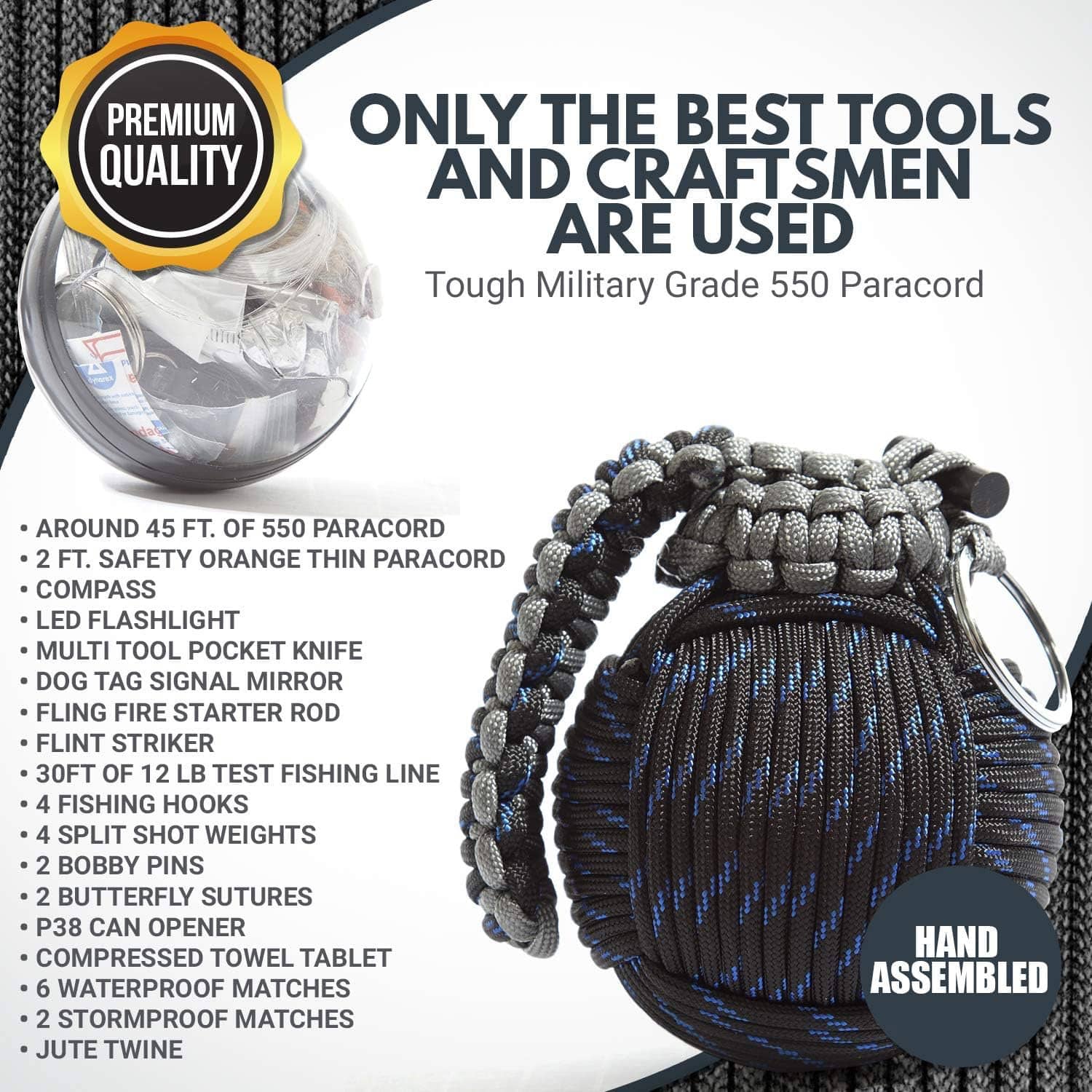Holtzman's Paracord Grenade Outdoor Survival Kit - 48 Emergency Tools!