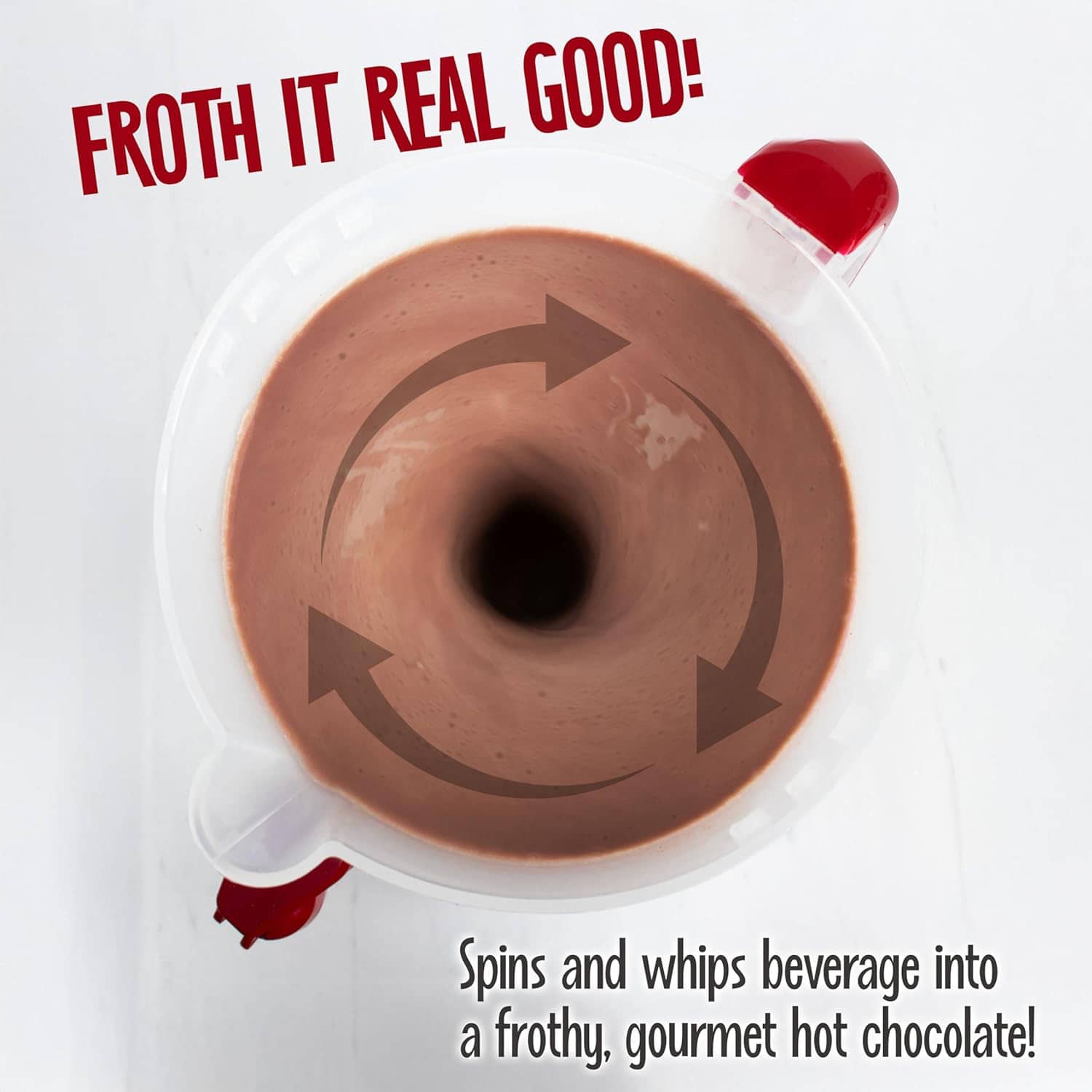 Anyways, warm memories aside, now you can whip up a big frothy batch of perfectly blended gourmet hot cocoa to share with all your friends and family anytime you wish with this cool new Nostalgia Retro Series Hot Chocolate Maker. This convenient all-in-one hot chocolate maker, frother, and dispenser makes up to 32 ounces, simultaneously heats and mixes (or just mixes for iced coffees, eggnog, and other chilled drinks), and has a built-in dripless spigot to dispense it. Just add milk or water and cocoa mix, and then set it to the heat and froth setting to spin and whip it to a frothy perfection. Besides hot chocolate, it can also keep hot apple cider warm for sipping after a long chilly day of picking apples or wandering around a pumpkin patch or use it to make lattes, mochas, cappuccinos, chai teas, and other hot beverages as well. Check out the video below to see it in action. Don't forget the mini marshmallows, whipped cream, and sprinkles! π