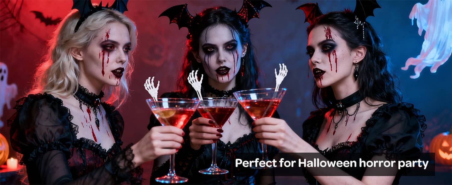 At your next Halloween bash, let your fiendish guests stir up their cocktails in macabre style with these cool new yet quite dead Skeleton Arm Cocktail Stirrers. These spooky swizzle sticks / stirring bones look like bony 3D skeleton arms and are perfect for sticking in a cocktail, a cupcake, or just in the soil of your boring houseplant to make it a bit creepier for Halloween. These nearly 6-inch-long skeleton arms are generously sized, so you could also try sticking the humerus end through a large olive garnish for your martinis or grab two of them to use as a pair of disturbing chopsticks while picking up tasty finger foods. Even cooler, these solid skeletal stirrers are reusable after giving them a good rinse. Available in white or black. ππΈπ
