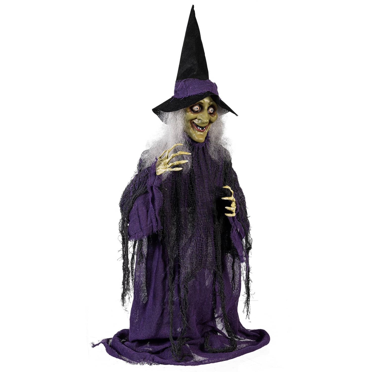 Tired of the gigantic mega-sized animatronic Halloween decorations taking up your entire front lawn, living room, and/or... bedroom? Wish you could dial back the overblown decorative Halloween spirit just a wee bit? Then behold this cool new Spooky Tabletop Animated Witch. This malevolent little wicked witch is only 40 inches tall, moves, speaks, lights up, and plays creepy sounds when it detects motion, and is the perfect size to place on a tabletop, kitchen countertop, fireplace mantel, bar, or even on your desk at the office to annoy everyone. You don't even need to plug it in, because it magically comes to life using only AA batteries. Best of all, its compact size makes it much easier to store away in the off-season or just leave it up all year round if you're a bit strange and unusual. Check out the video below to see this miniature green-faced cackling spell-caster in action. π§ββοΈ