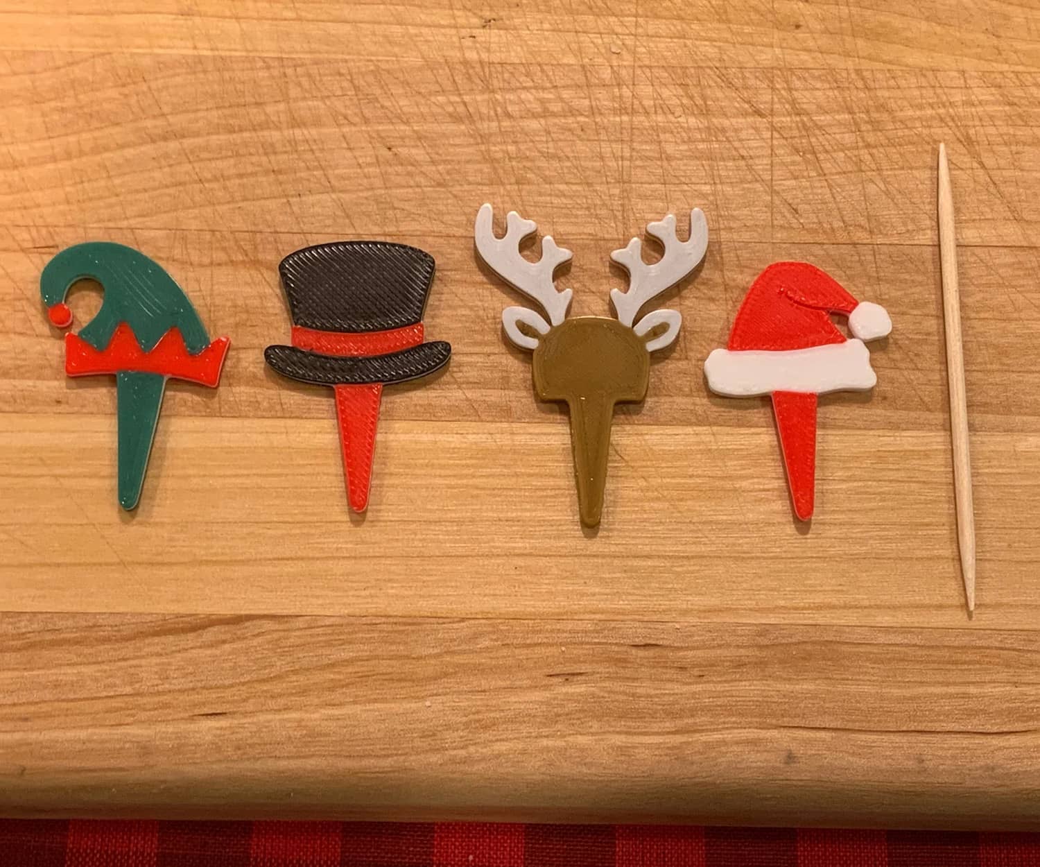 Christmas Party Food Pick Holiday Hats: Santa, Elf, Reindeer, Snowman