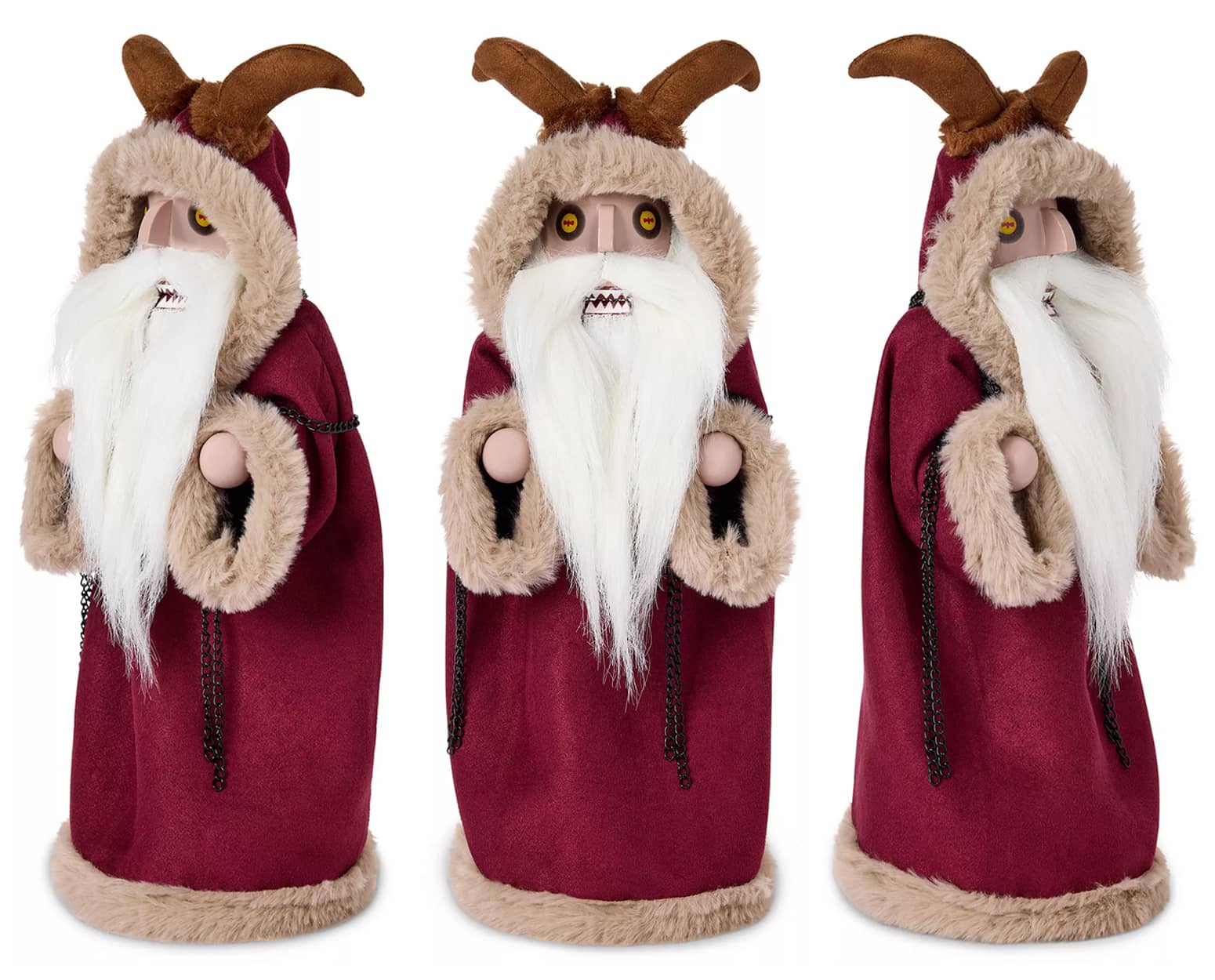 Yep, embrace the darker side of the holiday season and have a very scary Christmas (or Krampusnacht) filled with yuletide fear when you crack walnuts, pecans, almonds, hazelnuts, and more in the fanged metal mouth of this officially licensed nutcracker based on the character from the heartwarming classic Christmas movie, Krampus. This whimsical miniature version of the half-goat, half-demon, and increasingly infamous German and Austrian Christmas folklore legend has plush horns, creepy yellow eyes, a white beard, and a long dirty red winter coat adorned with chains.