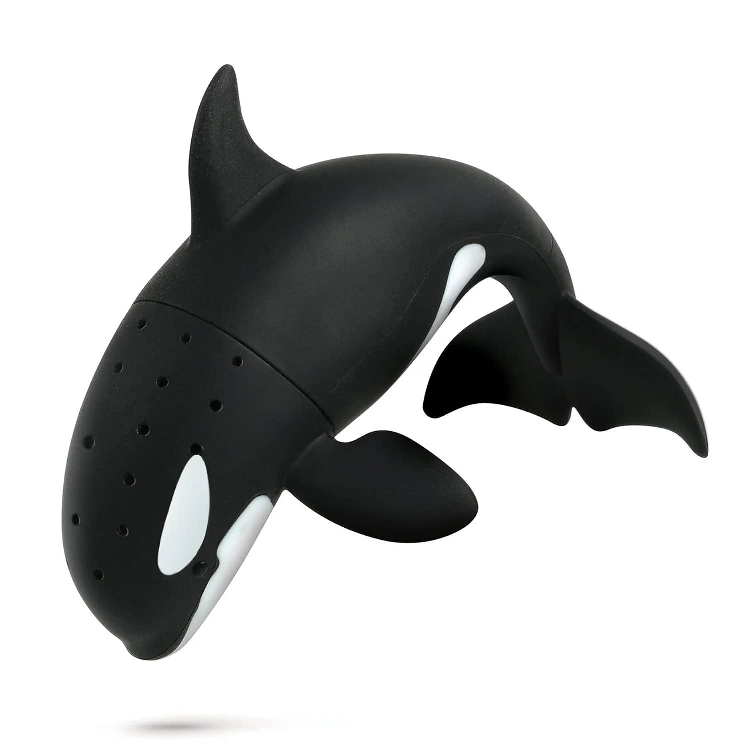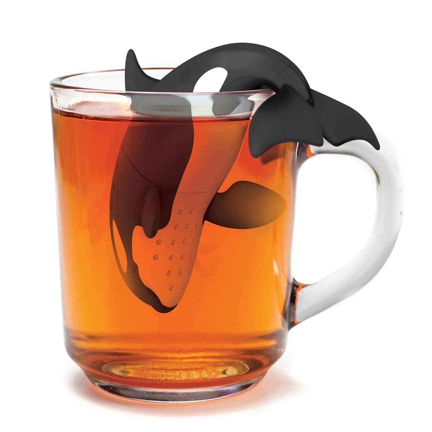 If you love making tea, whale watching, and the Free Willy flicks, then this cool new Orca Tea Infuser from FRED should satisfy your thirst and killer whale enthusiasm. This whimsical little orca-shaped silicone tea infuser hooks onto the rim of your cup with its large tail flukes hanging over the side. To use, just fill with your favorite loose-leaf tea, place in your cup, and then daydream about these majestic killer whales leaping up from the ocean depths while it slowly steeps. Hmm, it might be best to keep this double-take-inducing tea-steeping cetacean away from seals, whaling ships, and aquatic theme parks.