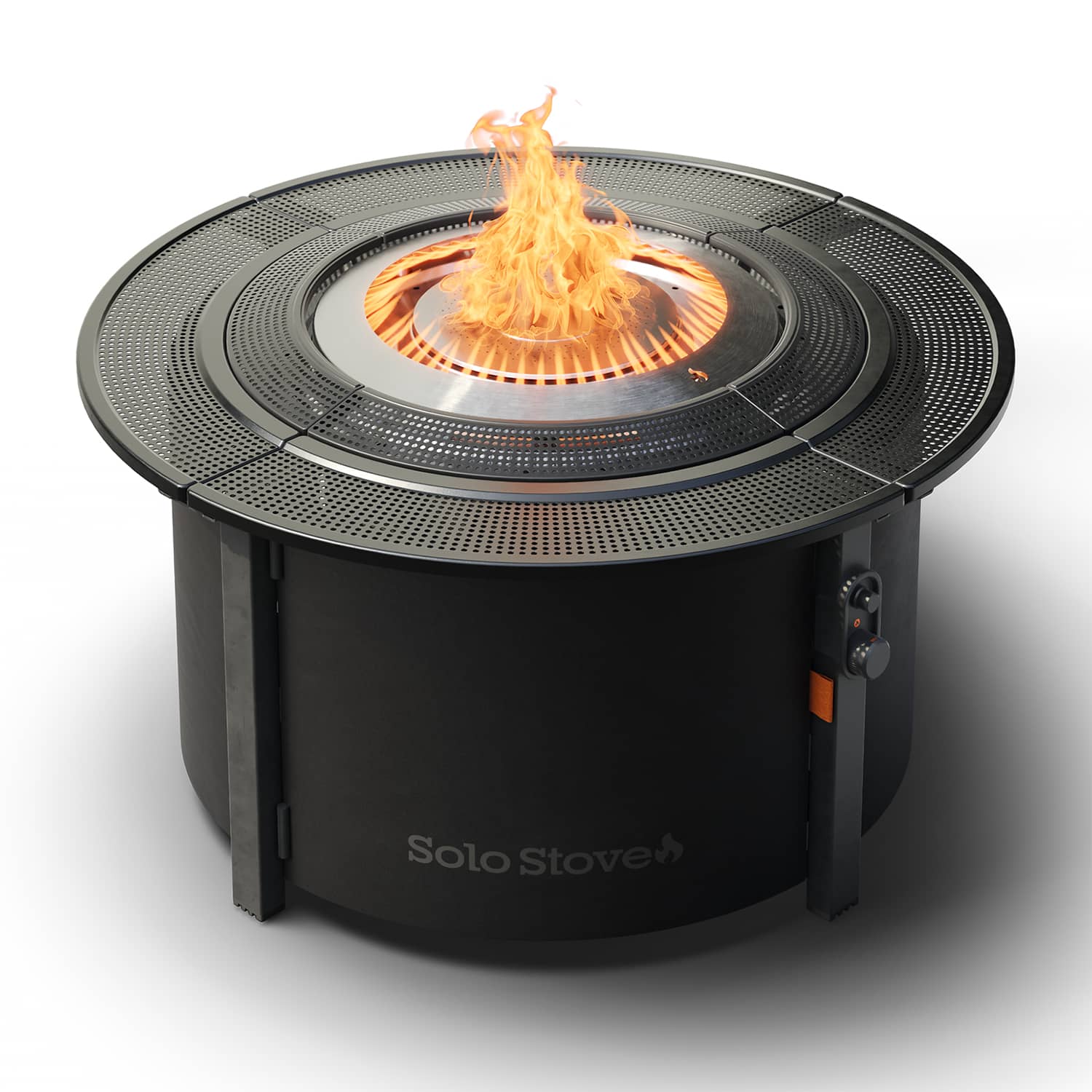 Do you wish you could enjoy a big blazing wood--burning fire pit experience, but without all the hassles of dealing with a wood-burning fire pit? Then simply hit the ignition button on this cool new Solo Stove Infinity Flame Propane Fire Pit. This ultra-convenient propane-fueled fire pit uses an innovative dual-burner design with precision airflow to recreate the natural rise, swirl, and movement of flames coming from a true wood fire - minus all the wood, ash, sparks, and smoke.
