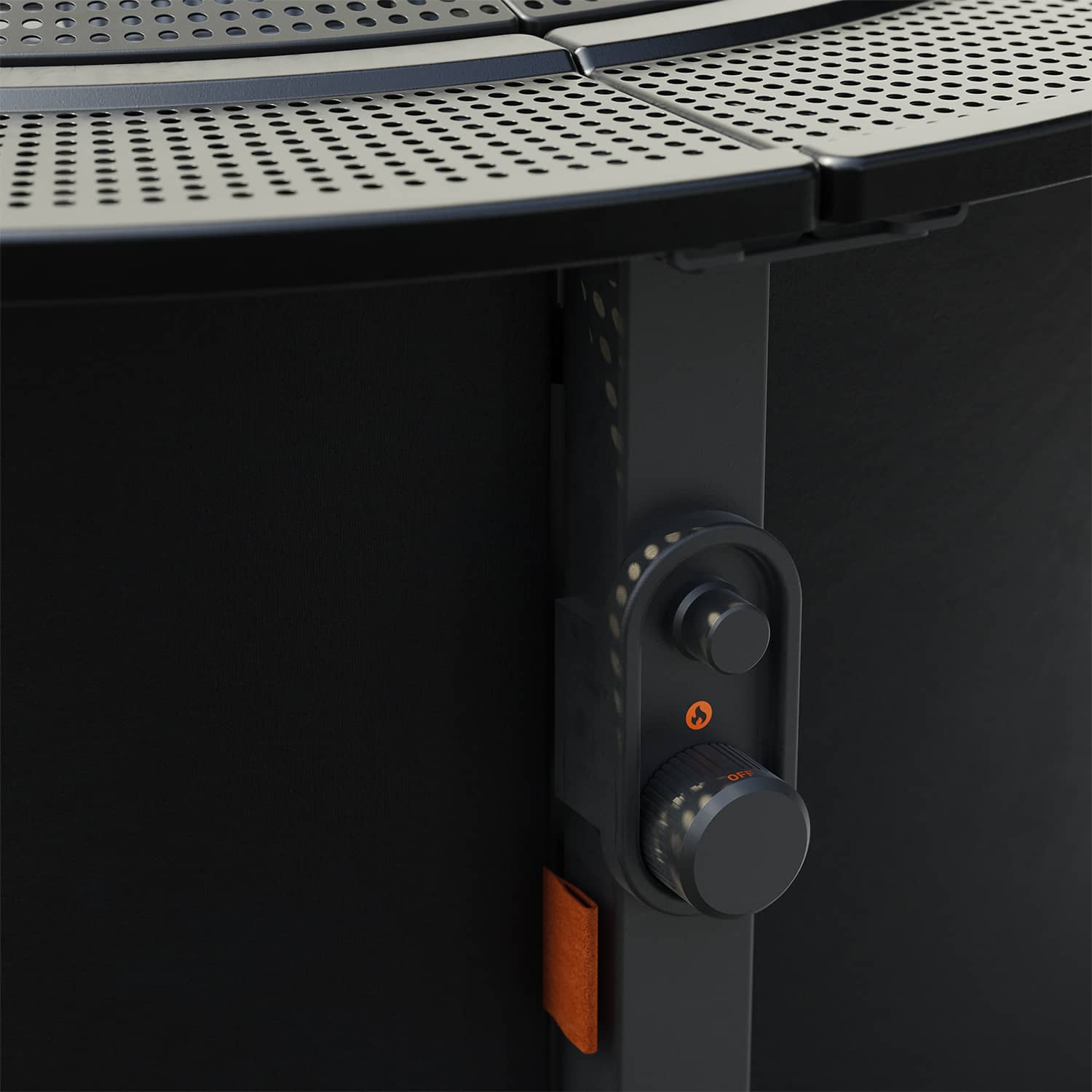 This cleaner and safer alternative to a wood-burning fire pit produces up to 72,000 BTUs of heat, runs for up to 5.5+ hours on the Dual-High setting and 9.5+ hours on the Outer setting using a standard 20-lb propane tank. It also features instant ignition, precision heat control with the turn of a dial, an integrated tabletop that can seat 5-8 people around, a hidden propane tank on a pivot-out arm for simple tank swap outs, and it includes a ring of decorative fire glass cubes with a mirrored black pearl finish.