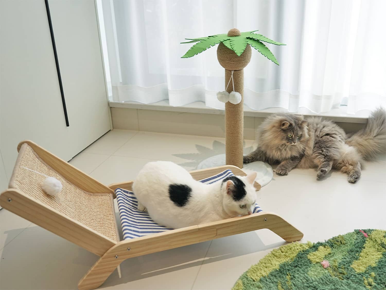 Cat Beach Chair - Elevated Hammock Bed and Palm Tree Scratching Post