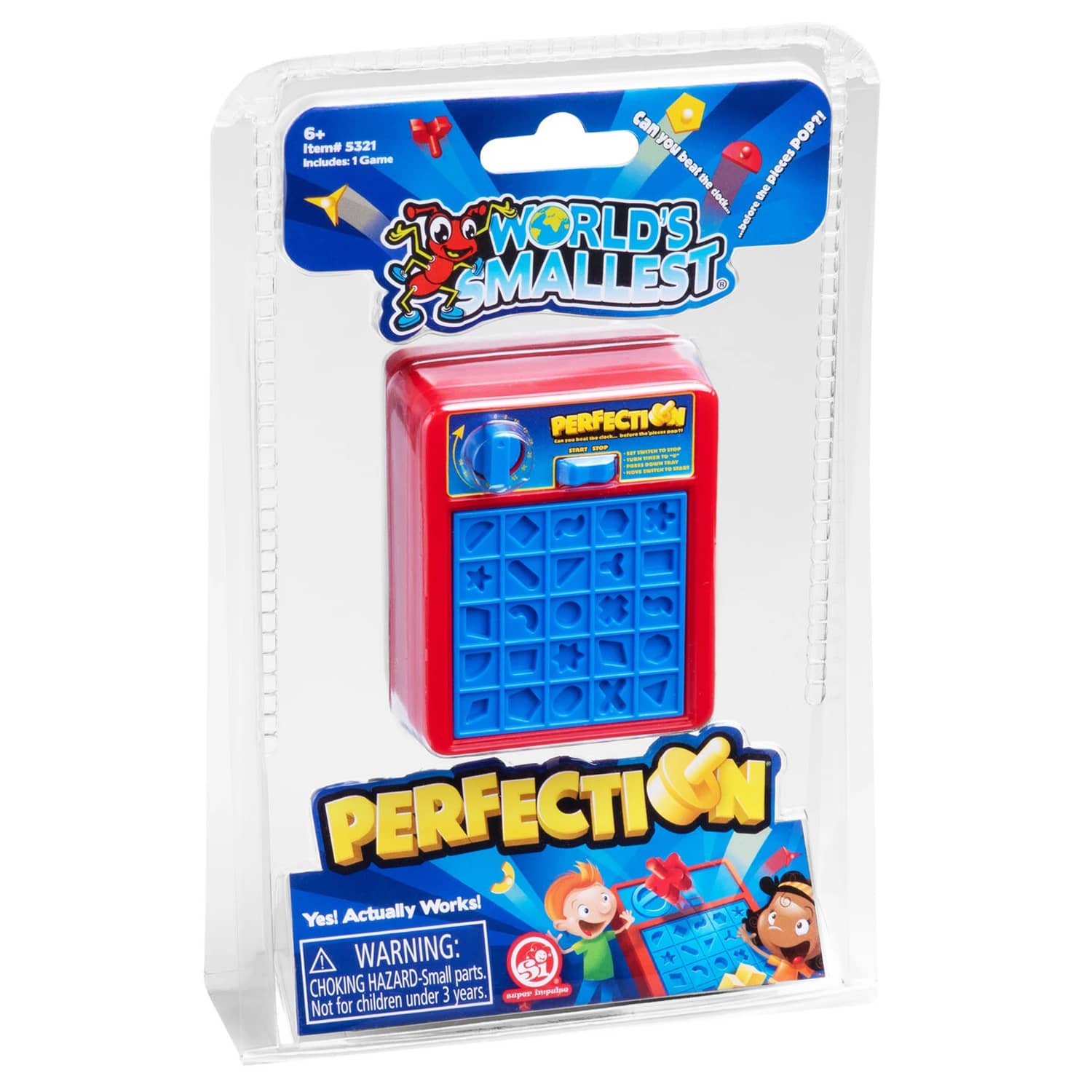 If you thought the classic, full-sized Perfection game was way too anxiety-inducing, then prepare your nervous nerves for an even more stressful challenge with this cool new yet quite retro World's Smallest Perfection Game. This fully functional, pocket-sized version of Perfection makes it even more difficult to place all the shapes into their respective matching slots before the ticking timer runs out, pops up all the pieces into the air, and gives you a serious frustrated fright. It takes speed, focus, and nerves of steel to match all 25 shapes in time in this fast-paced, pulse-pounding game, but finding all the miniaturized shapes after it pops might be the biggest challenge of all. It also makes the perfect stocking stuffer. π°