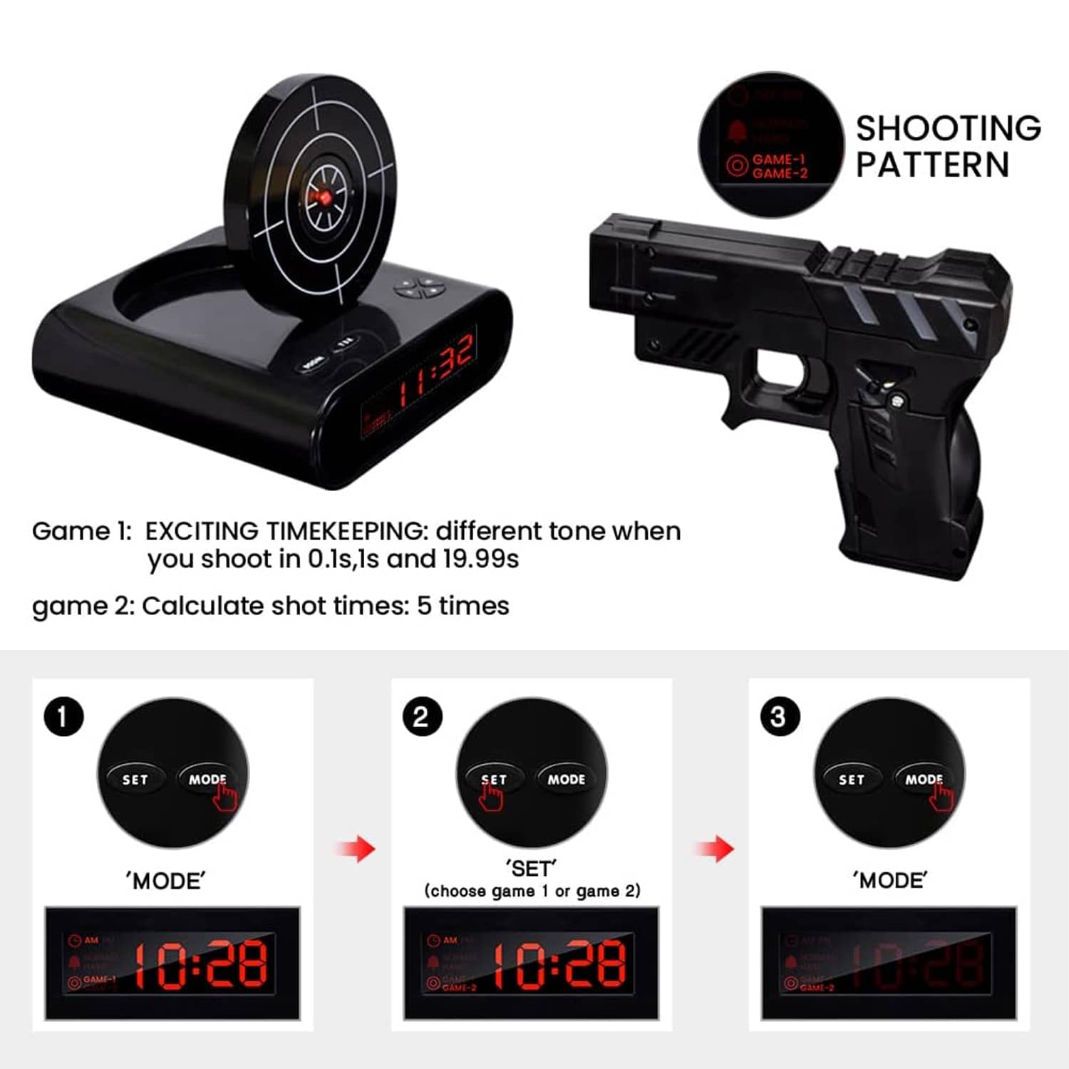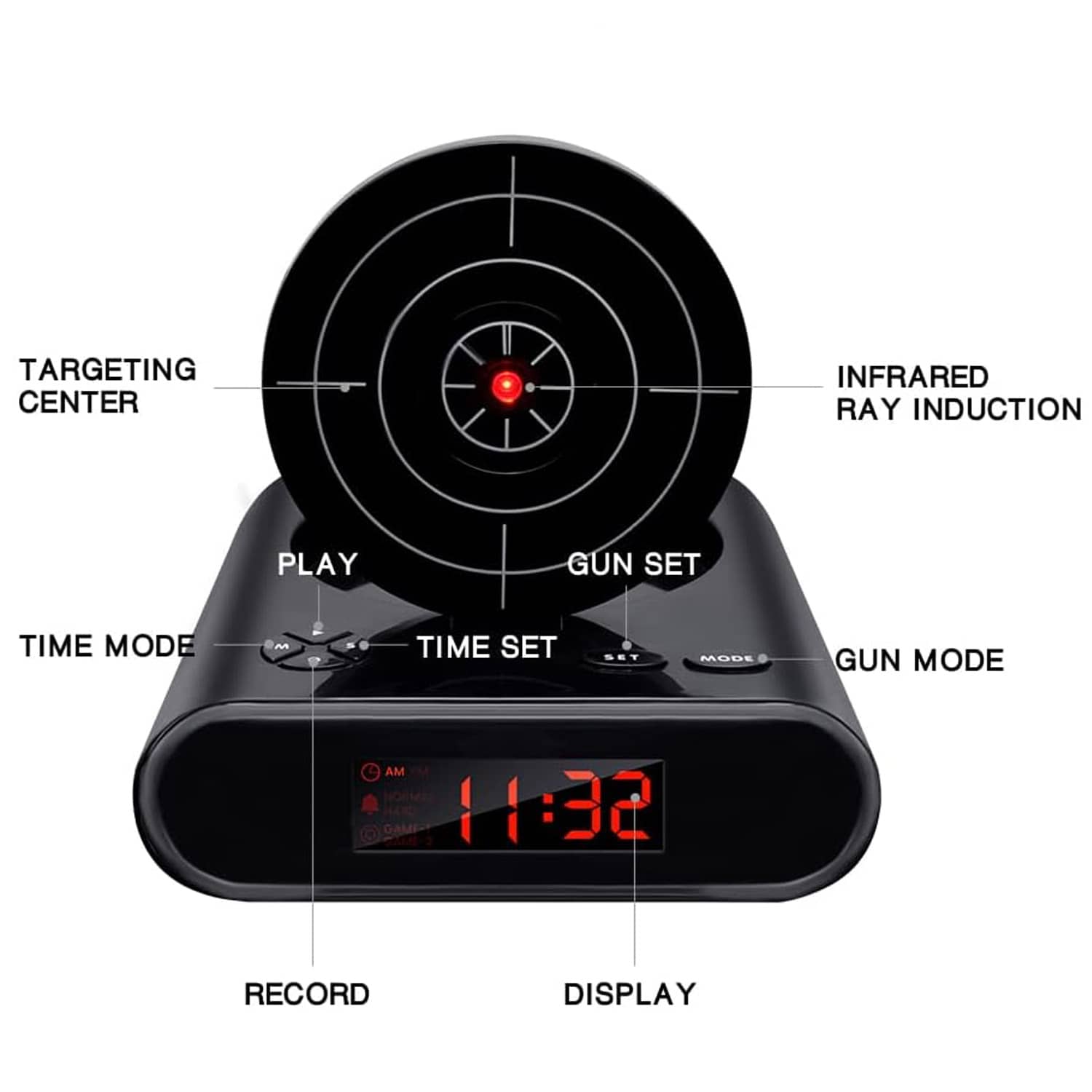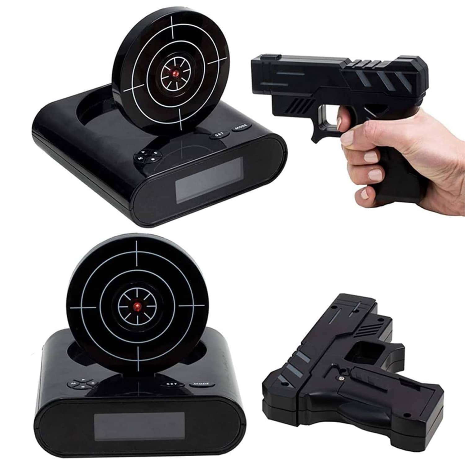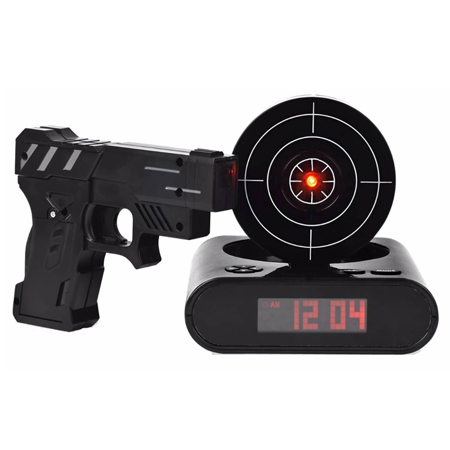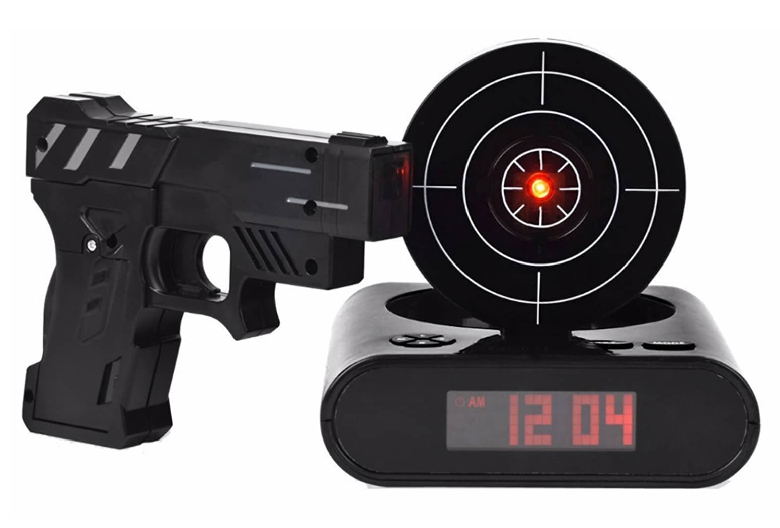 Are you a heavy sleeper or just an extremely irritable, non-morning person tired of shooting and replacing your poor, innocent alarm clock every day? This cool new Lock N' Load Target Shooting Alarm Clock requires you to shoot a target from an infrared toy blaster to turn off the blaring alarm. When the loud alarm goes off, a target pops up on the back of the clock, and then you'll need to shake out the cobwebs enough to find the infrared blaster, aim it at the target, and then try to shoot it to knock it down and disable the alarm. It can be set to a single shot or a much more challenging 5-shot sequence if you really struggle to wake up. If you're a terrible shot, you can also manually turn it off by hitting a button, so place this alarm clock across the bedroom to force you to get out of bed or become a better morning marksman. β°π«π₯±