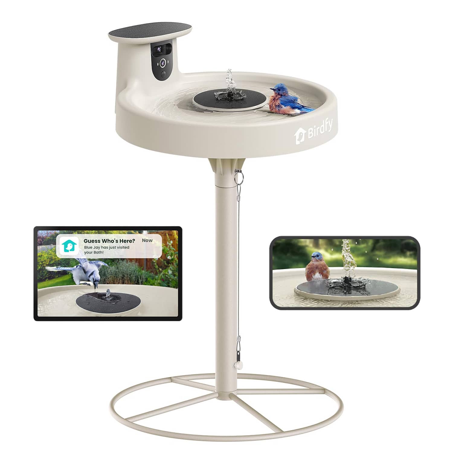 Birdfy Solar-Powered Smart Bird Bath Fountain, Camera, and Stand