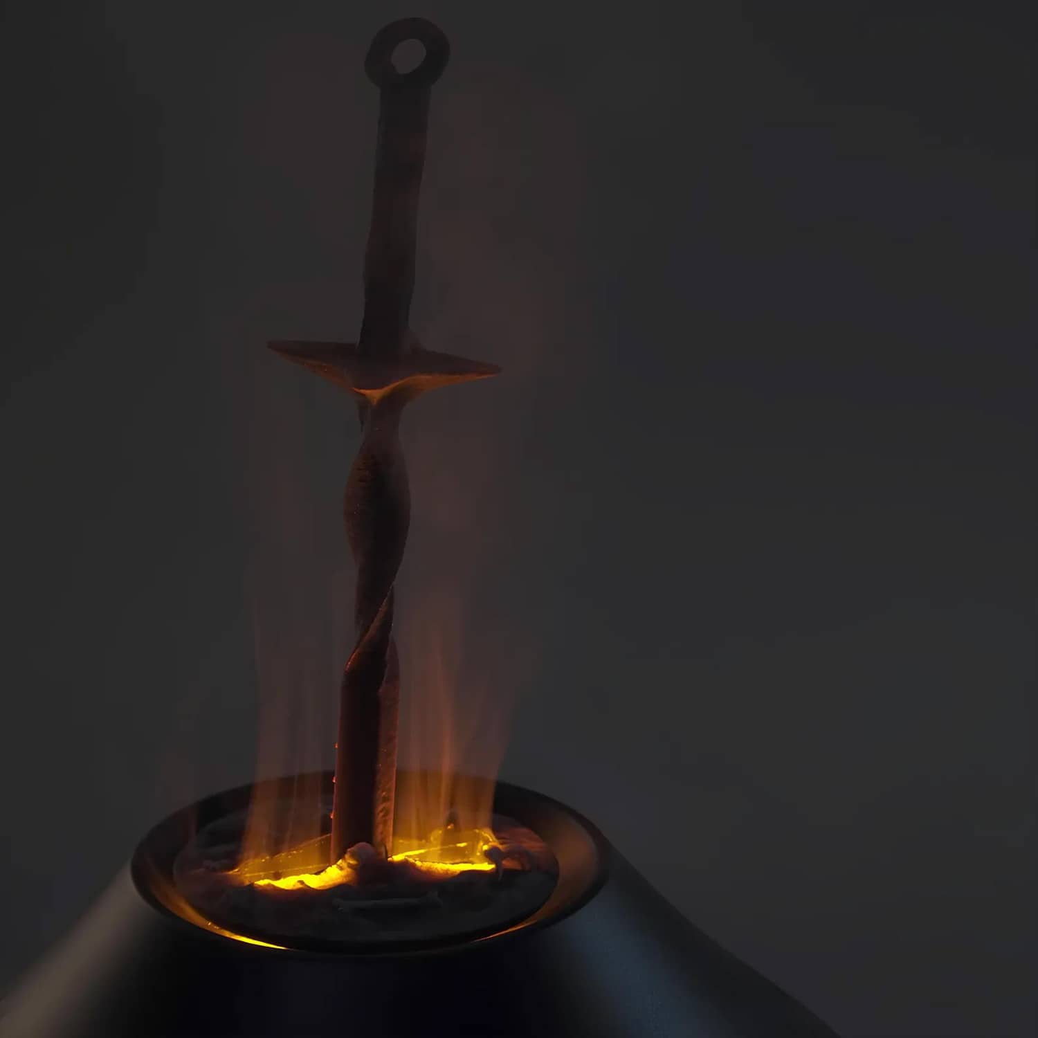 Normally, fire and water don't mix, but if you loved playing the Dark Souls role-playing video game series and happen to have dry air that's in serious need of moisture, then check out this cool new yet quite retro Dark Souls Coiled Sword LED Humidifier. This handmade, 3D-printed Dark Souls-inspired humidifier has the iconic Coiled Sword thrust down into the fiery bonfire shrine as LEDs create a realistic flame effect as the mist rises up. This double-take-inducing humidifier features customizable 7-color lighting to change the color of the flame illusion, a 130ML tank capacity, automatic waterless shut-off, and it also doubles as an essential oil diffuser for aromatherapy as well. I suggest a campfire scent. It's perfect for adding moisture to the air in the winter or just looking cool on display anytime else. Unfortunately, this ignited bonfire shrine doesn't actually let you travel to other bonfire humidifiers. π‘οΈπ₯π¦