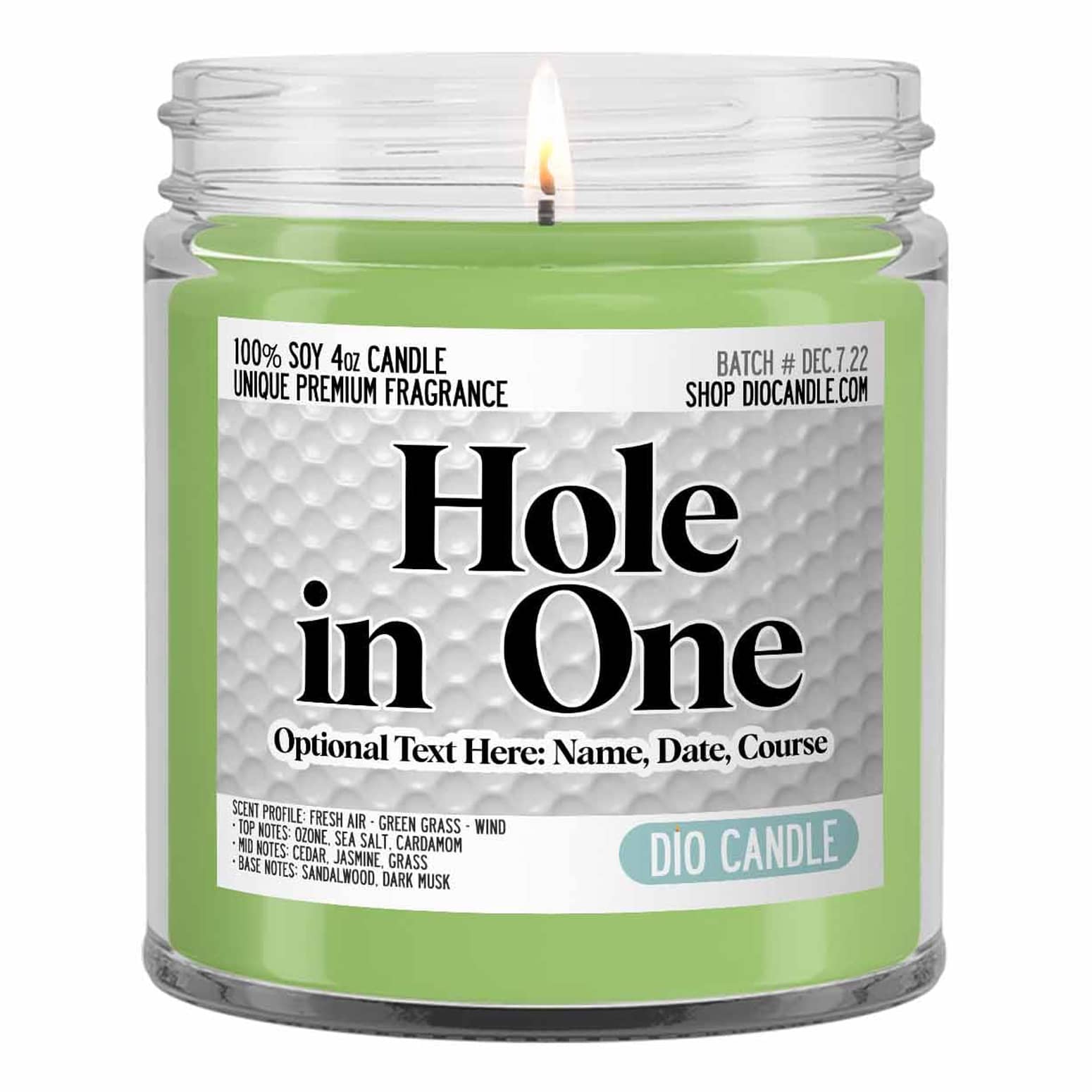 Fore! When you can't be on the golf course, but really wish you were, then simply ignite this cool new Hole-in-One Candle from Dio Candle Company. This hand-poured soy wax candle from Denver, Colorado instantly transports your nose to a golf course anytime you wish with the intoxicating outdoor scents of fresh air, green grass, and wind. This fun candle is perfect for golf lovers, golf course greenskeepers, caddies, man caves, or just anyone who enjoys the scent of well-manicured outdoor landscaping. It also makes a great gift. The scent of a few burning cigars not included. ποΈββοΈπ―οΈ