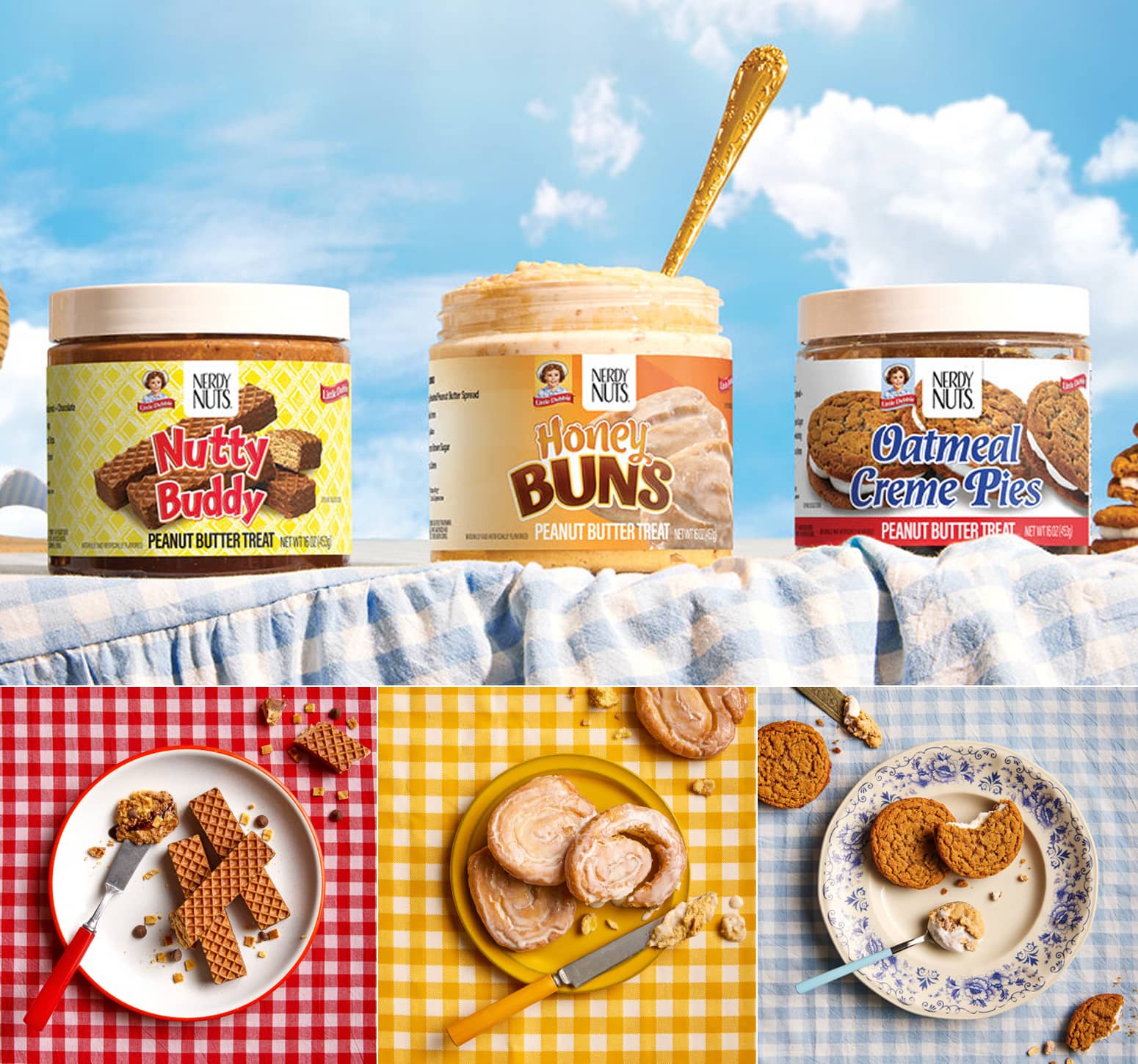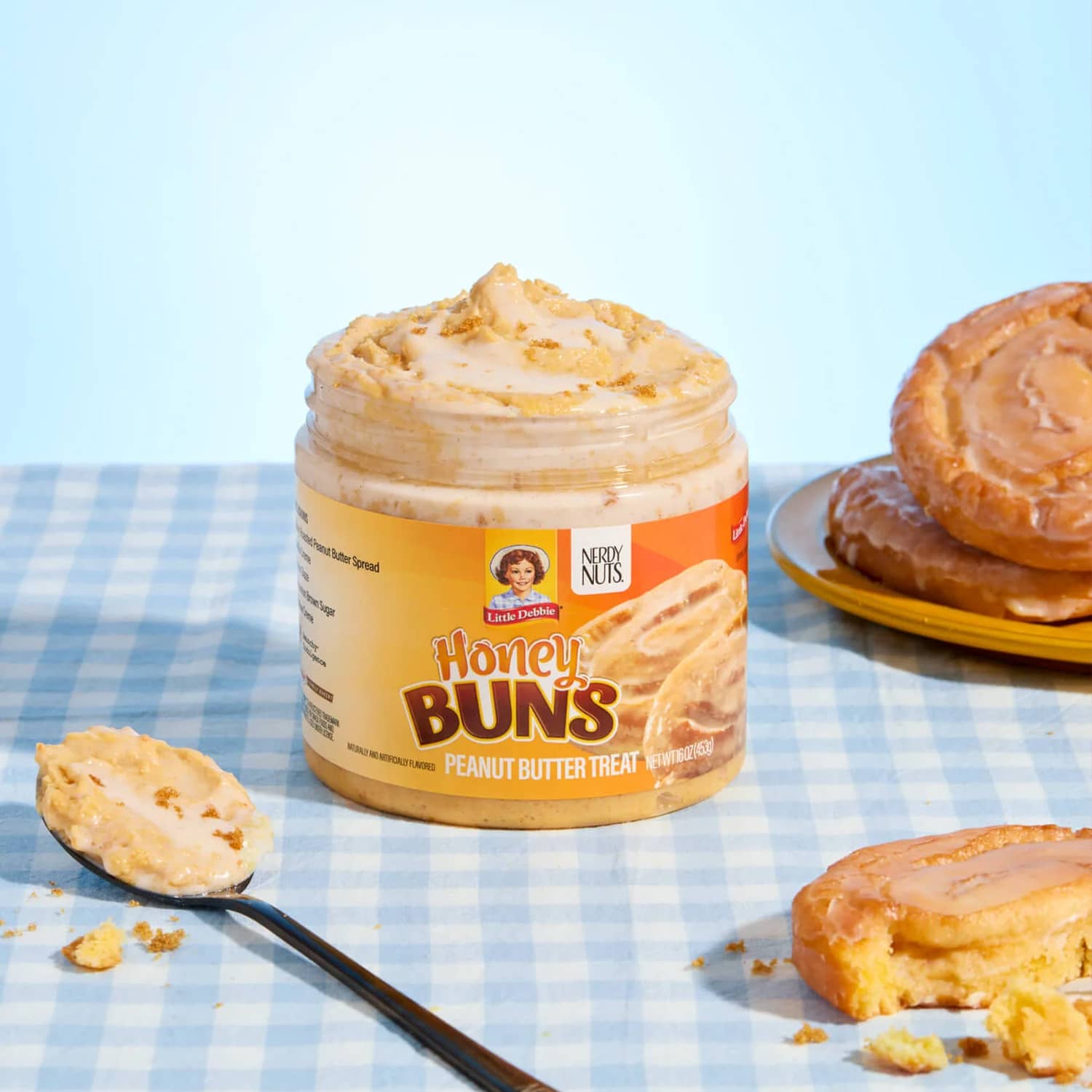 Peanut butter purveyor Nerdy Nuts and legendary snack aisle company Little Debbie have teamed up to create these cool new Little Debbie Snack Peanut Butters. Yep, Little Debbie snacks like Oatmeal Creme Pies, Nutty Bars, er, Nutty Buddys (when did this happen!?), and Honey Buns have been mixed into spreadable, spoonable peanut butter treats in a jar. They're perfect for topping ice cream, waffles, pancakes, peanut butter and jelly sandwiches (maybe !?), stalks of celery, or just eat it right out of the jar with a spoon, especially after school or work. Hmm, where's the Star Crunch peanut butter treat?