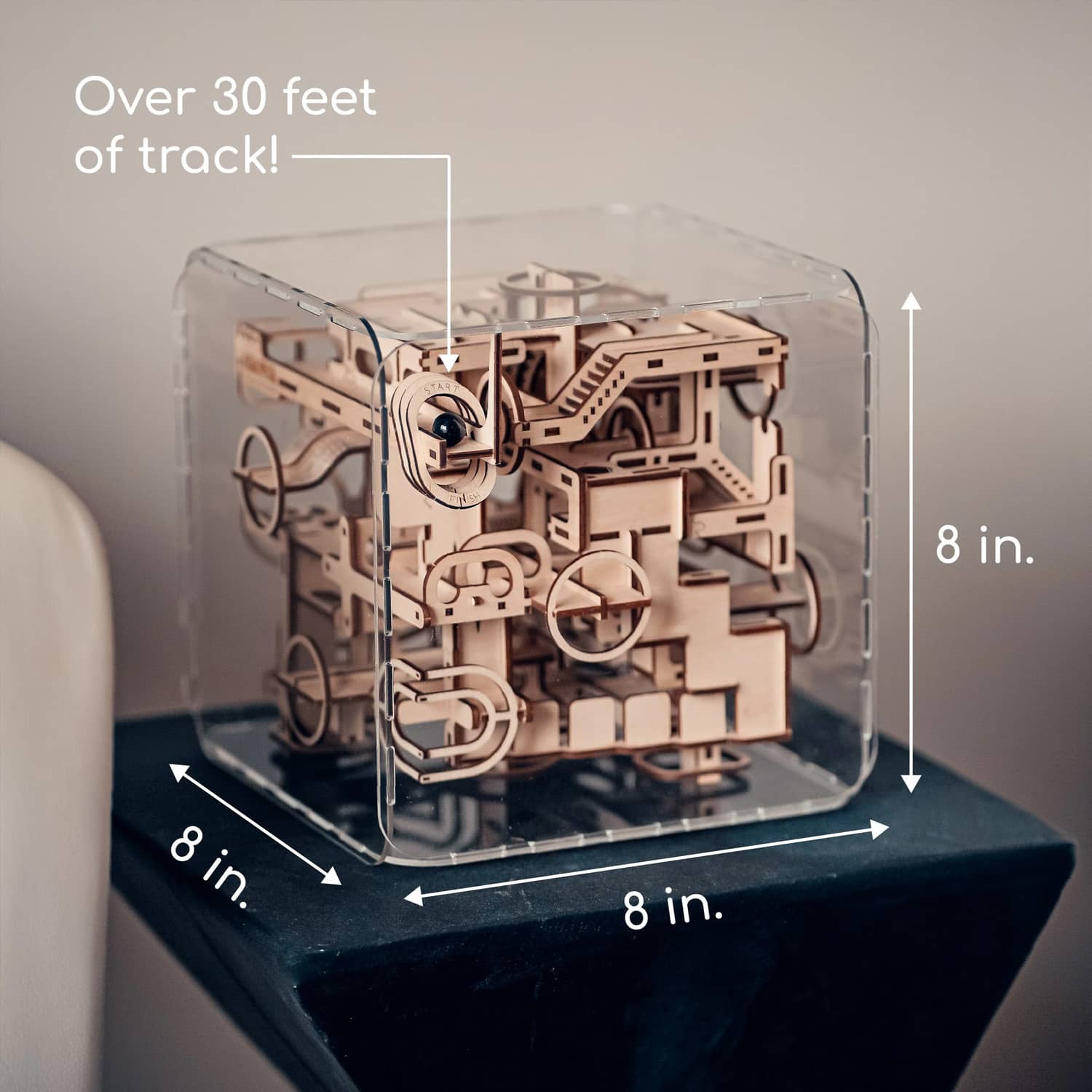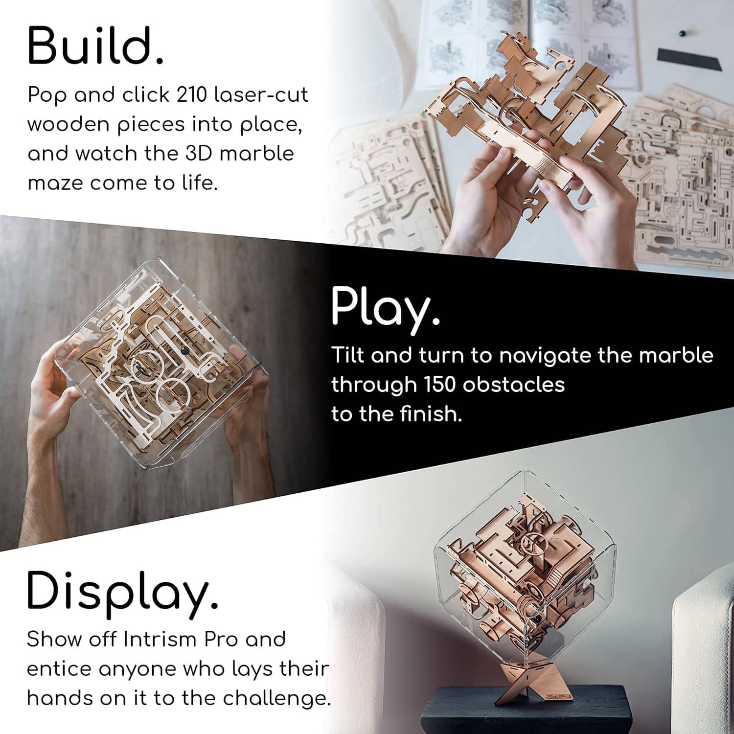 Bored? Need a challenge? Love puzzles? Then check out this cool new Intrism Pro. This 217-piece kit includes everything you need to assemble an interactive 3D marble maze puzzle cube. This challenging wood craft kit is made in the USA and lets you create an intricate 3D marble run out of precision, laser-cut wood pieces and requires no glue or tools to assemble. Once completed and placed inside the included acrylic cube enclosure, simply drop in the marble and try to guide it through the 30-foot-long labyrinth of mazes filled with 150 obstacles, drops, rails, stairs, ramps, rings, and more before reaching the finish line. Well, it definitely sounds like a fun challenge to play or just display as a unique sculpture... if you ever get it assembled that is. π§©π€