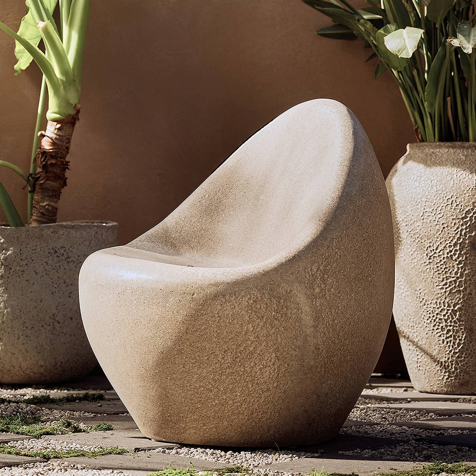 Wish your outdoor furniture blended in a bit better with the actual great outdoors? Then take a seat on this cool new yet quite stone age-inspired Nogu Concrete Outdoor Lounge Chair. While it may look like a natural, egg-shaped boulder with a smooth, river stone-like surface, it's actually a unique outdoor chair that's made in the USA from a hand-cast blend of resin and concrete. Don't worry about trying to roll it around into place or it rolling down a backyard hill after you, because it has a hollow core and only looks heavy, like any good giant faux rock should. It's available in graphite, sand, clay, emerald, and umber colors. πͺ¨πͺ