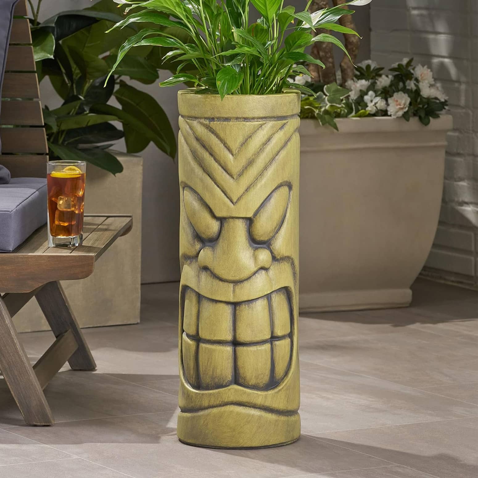 This summer, if you can't make it to a tropical island, then try to satisfy your love of all things tiki with this cool new Tiki Totem Planter from Christopher Knight Home... yep, that Christopher Knight AKA Peter Brady from The Brady Bunch. This fun Polynesian-inspired tall planter may look like a tiki totem made of carved wood at first glance, but it's actually lightweight cast-stone concrete that can withstand the outdoor elements. Just add plants or flowers to the opening on top of its head to give this decorative tiki god a cool, natural hairdo. It's the perfect tall planter to enjoy while sipping a mai-tai on your patio, deck, poolside, or home tiki bar, and I believe it is curse-free. Hmm, since the Brady boys had some trouble with an evil, cursed tiki idol when they visited Hawaii in the past... maybe it is cursed!? That comes at no extra charge, though. πΉποΈ